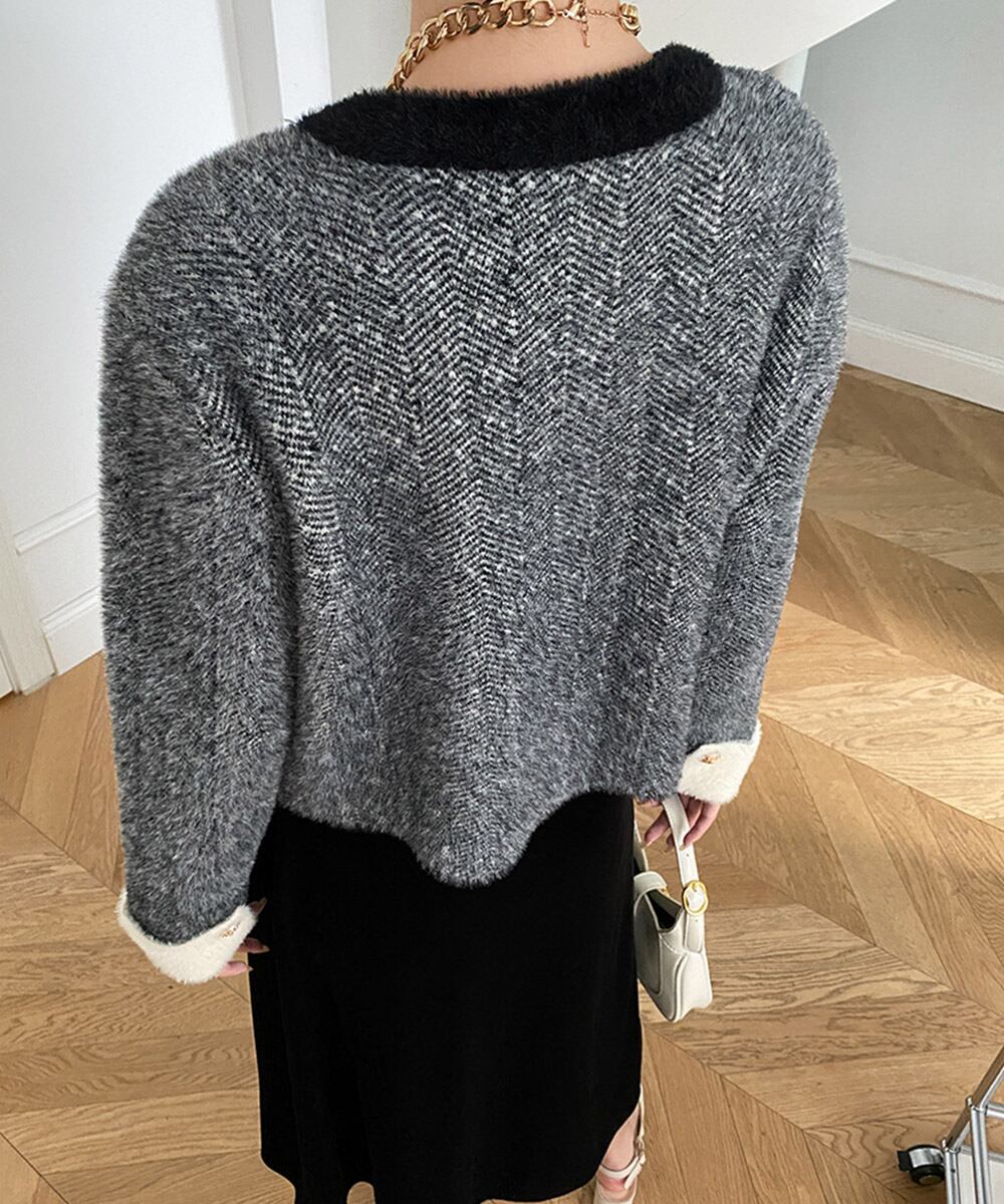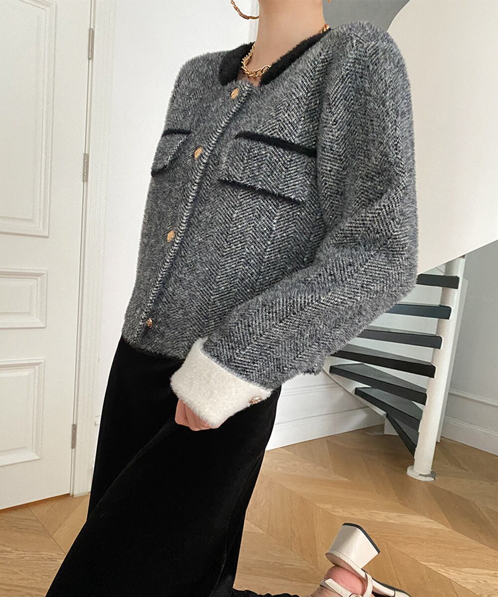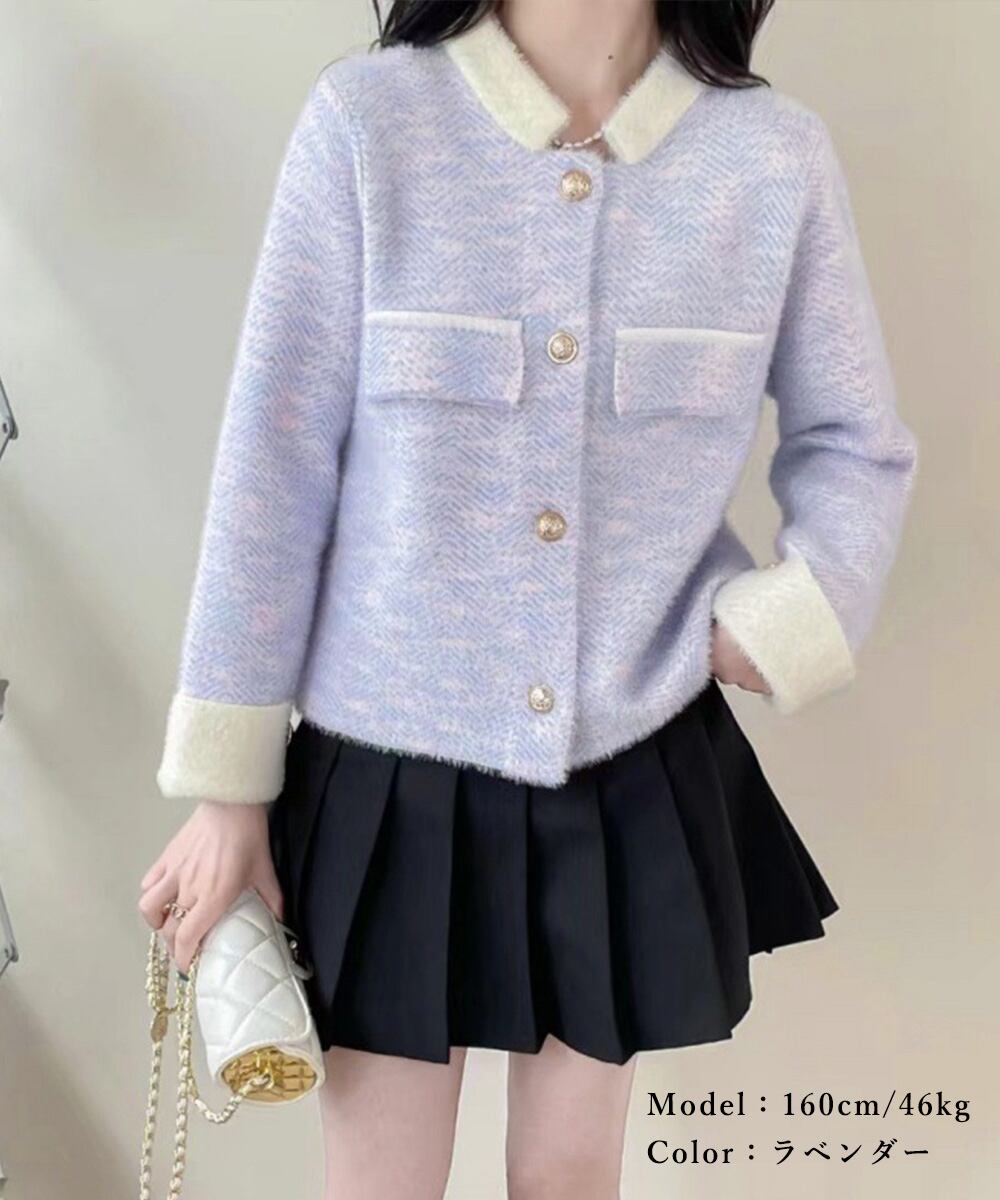 しなやかでフラットな肌触りが柔らかく、軽やかな新感覚をもたらす、上質なツイード風レディースニットカーディガン。