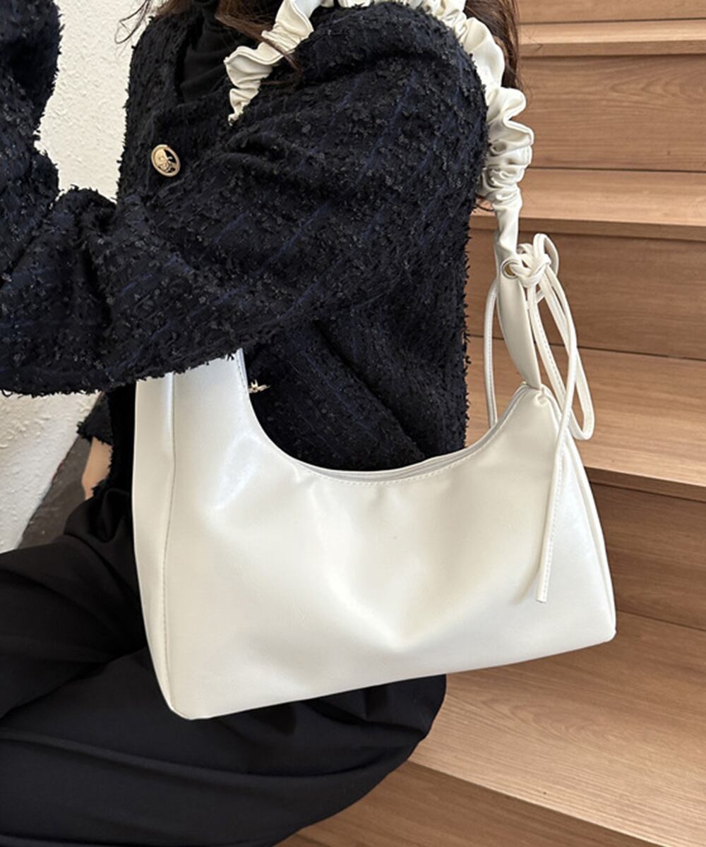 シンプルなデザインが魅力のシーズンレスで使えるショルダーバッグ。
