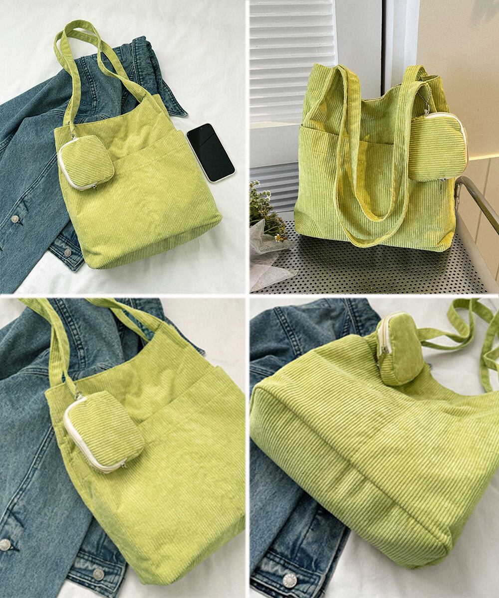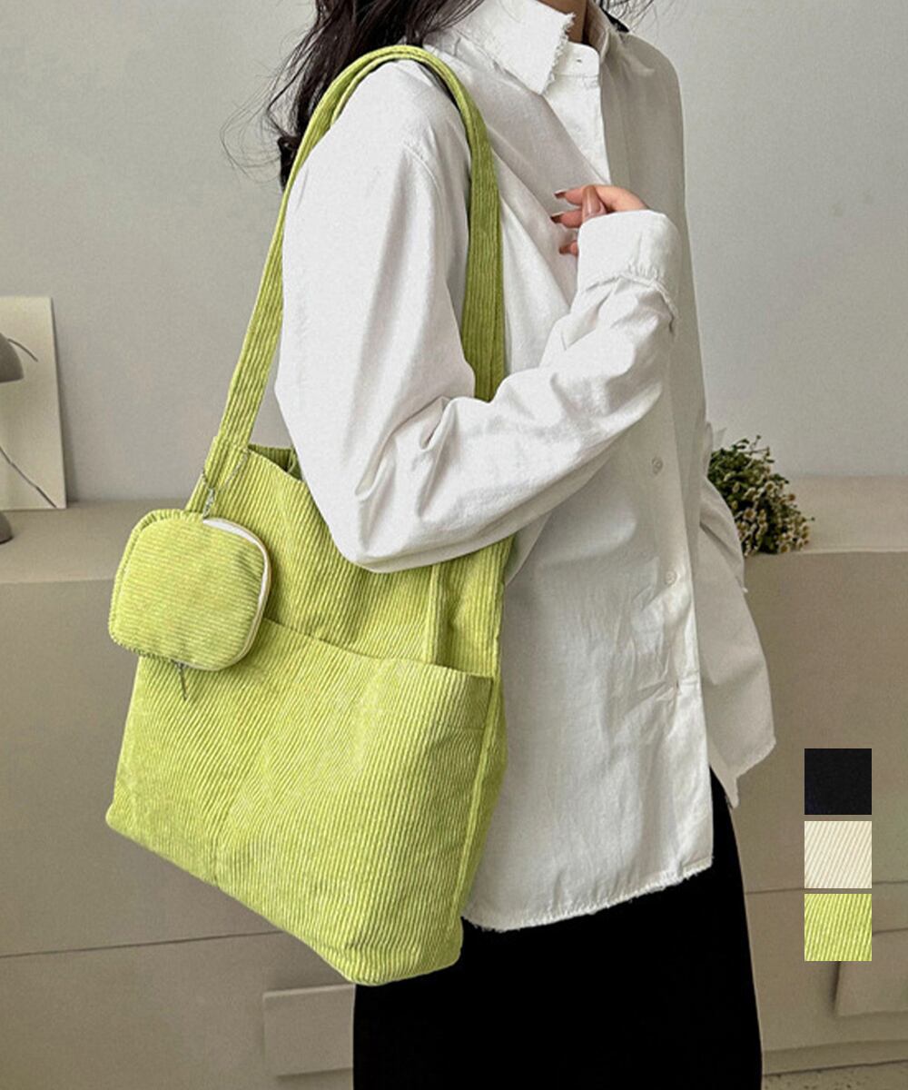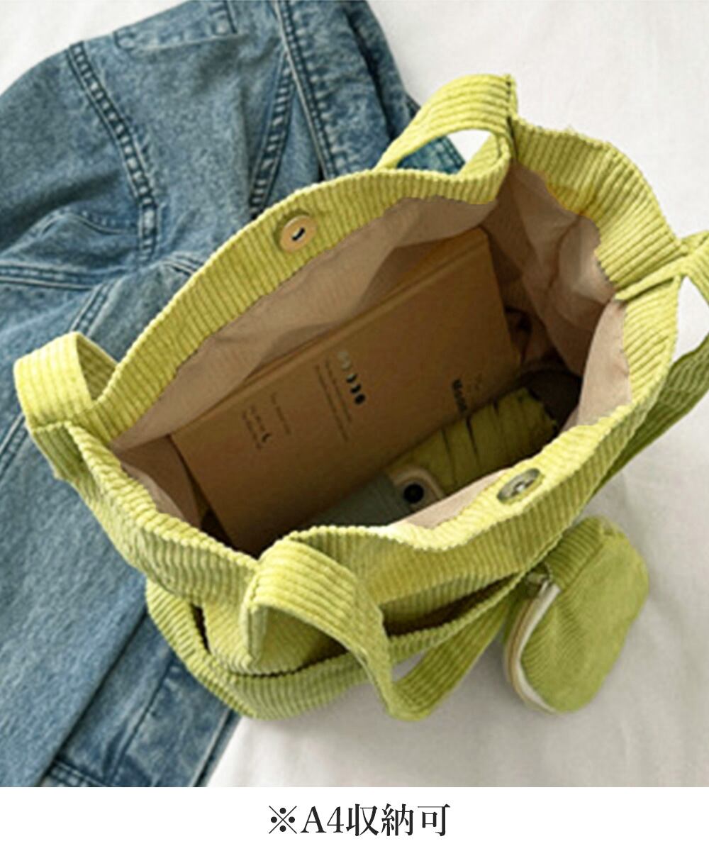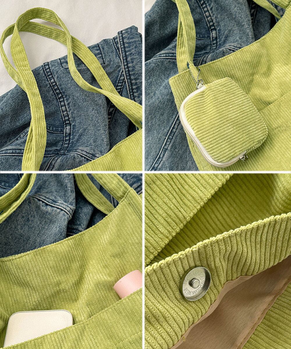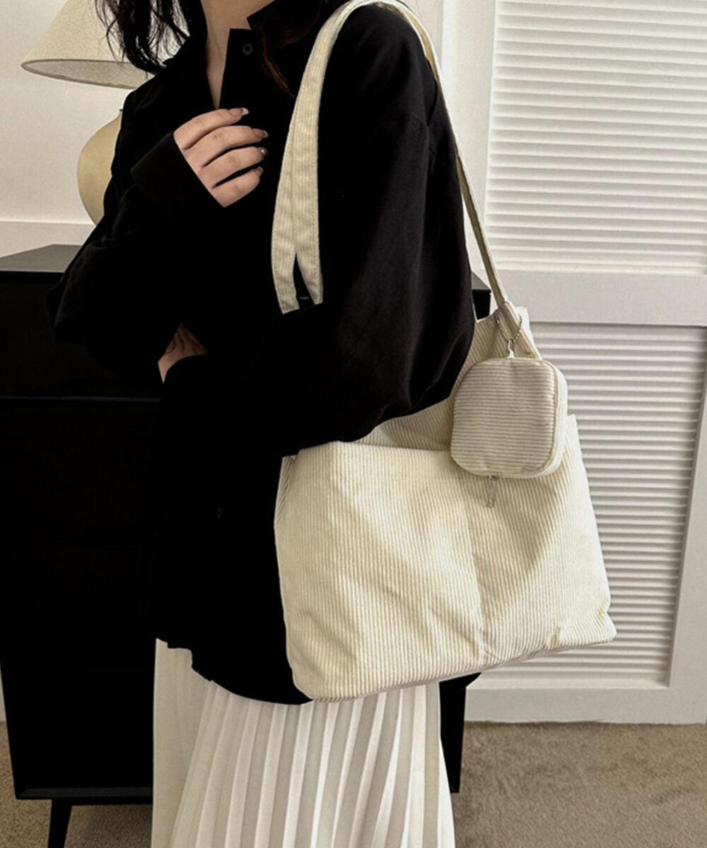 ナチュラルな風合いが魅力のコーデュロイ素材を使用したトートバッグ。