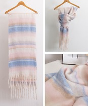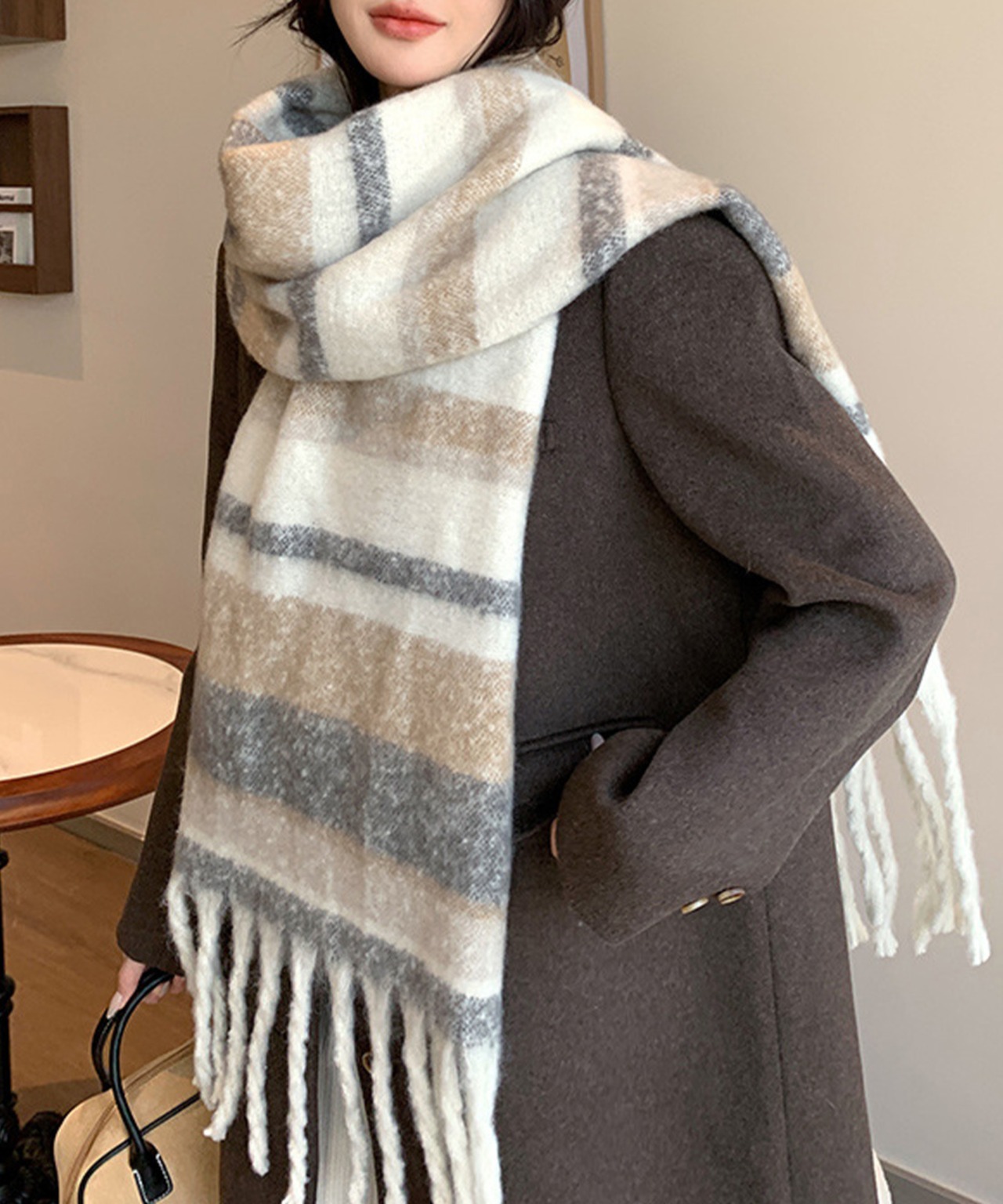 包み込まれるような上質な肌触り、ふわふわ柔らかな素材感の大判マフラー
