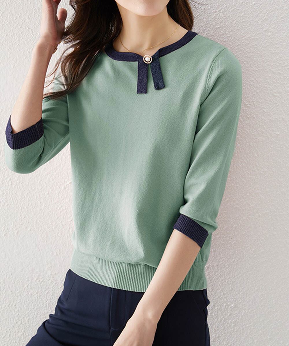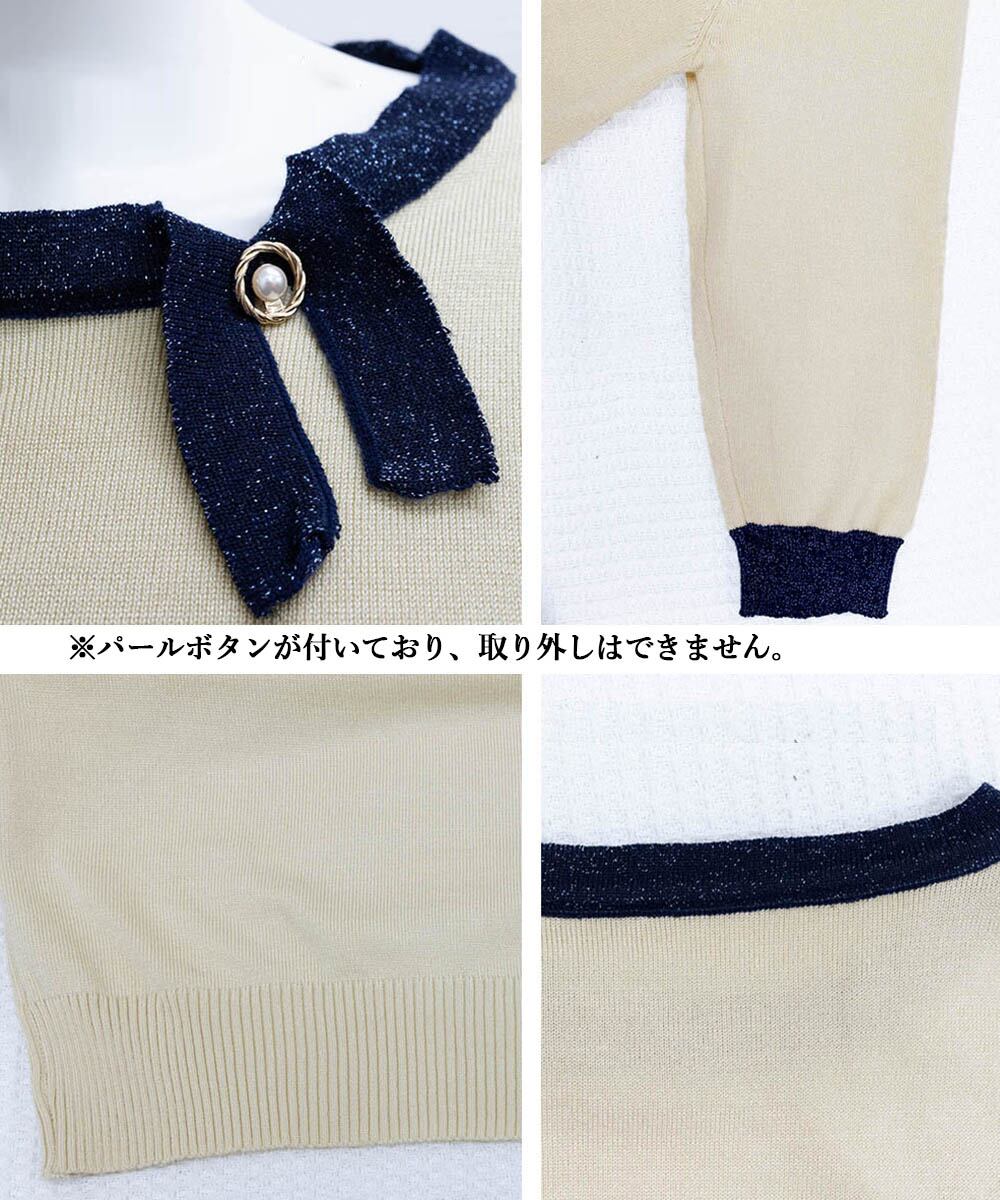 パールポイント バイカラー ハイゲージニット 上品 きれいめ ニットトップス オフィスカジュアル大人 人気 ニットソー