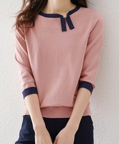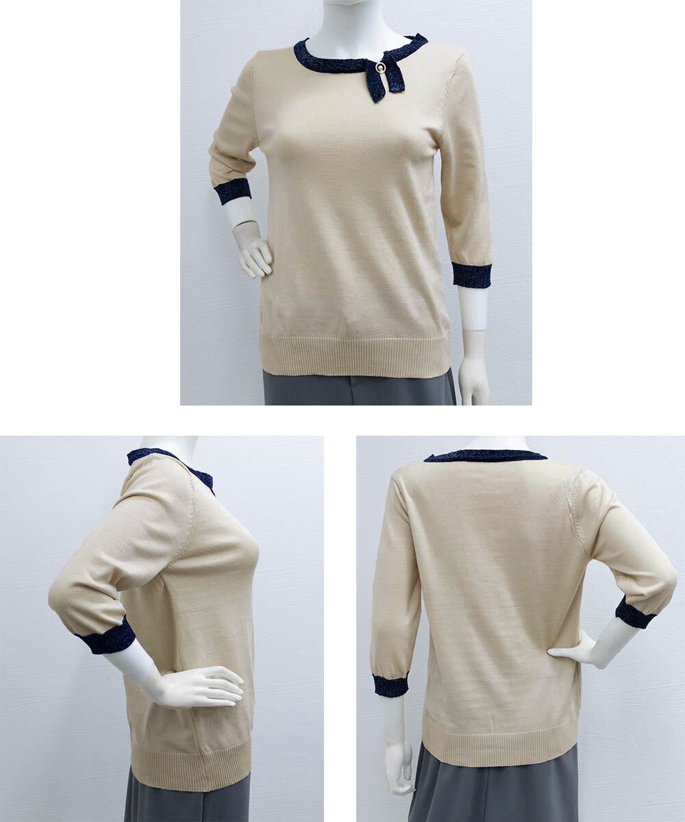 レディース 7分袖首リボンニットセーター