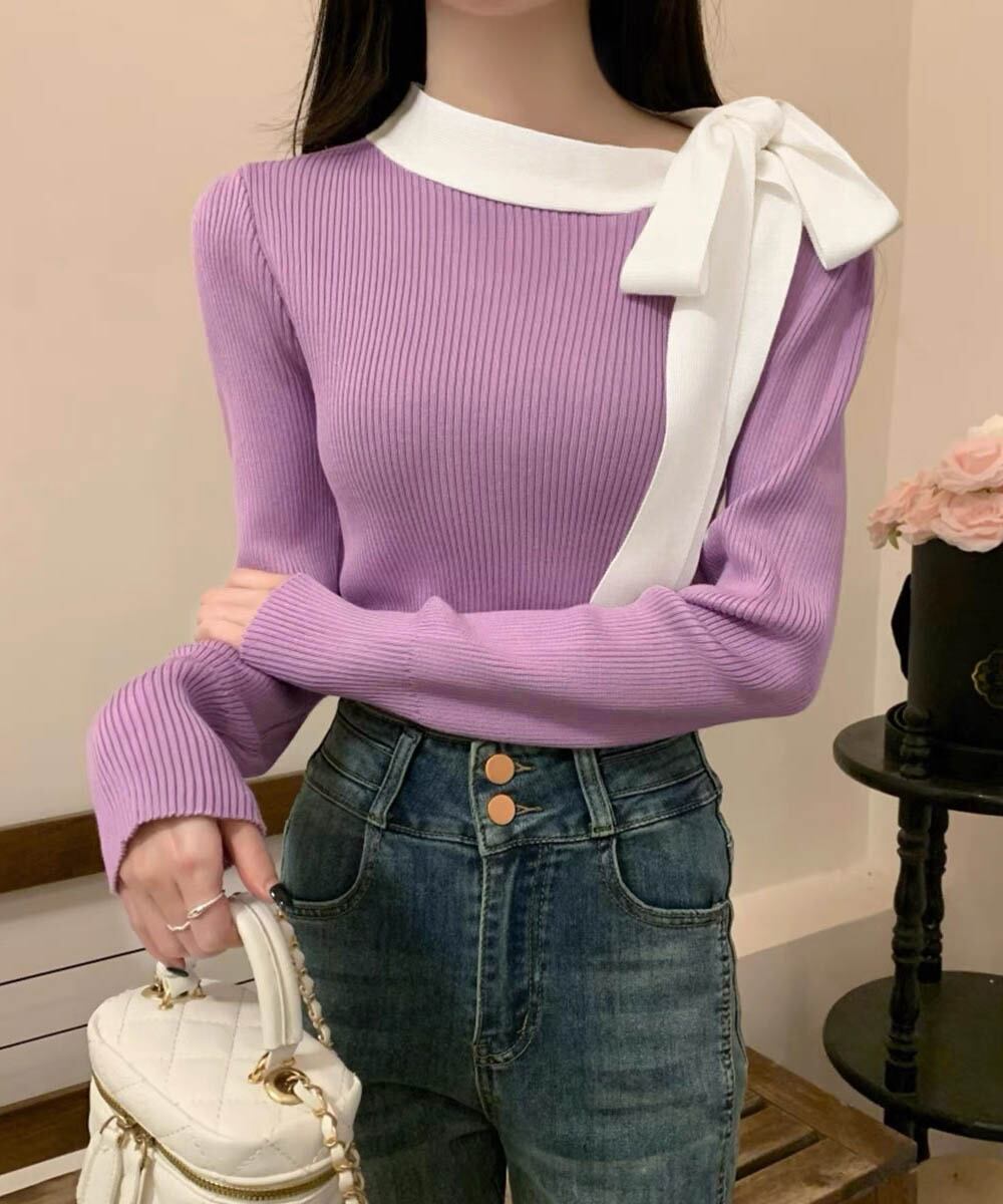 レディース 長袖トップス フェミニン 上品 柔らかい ベーシックニットソー 着回し 無地 可愛いエレガントニットインナー