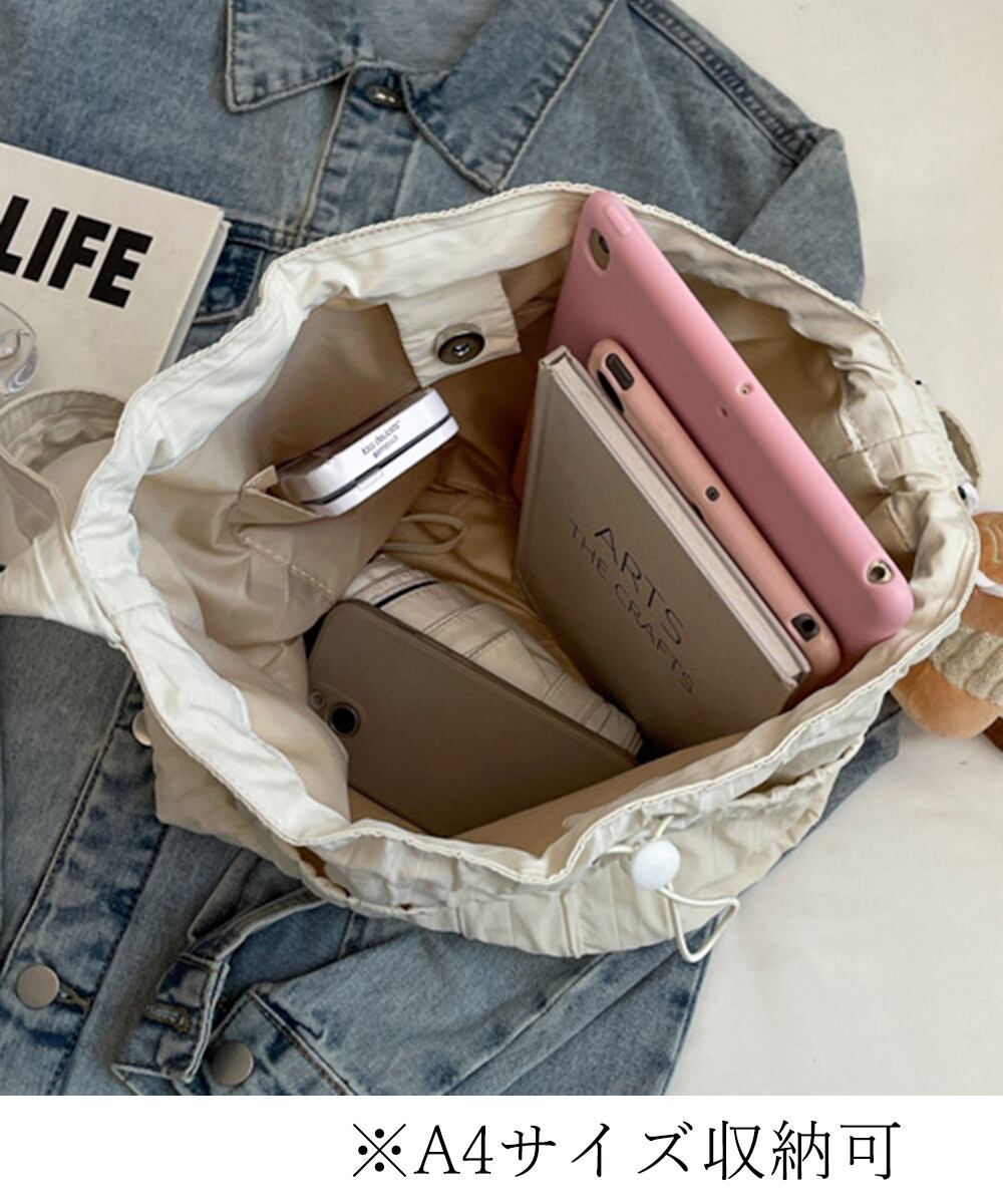 肩掛けバッグ A4収納可能 手提げ鞄 韓国風 大人かわいい マザーズバッグ ドローストリング付き 斜め掛け おしゃれ