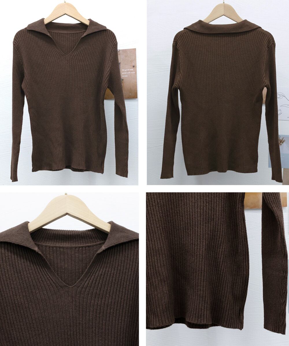 柔らかく伸縮性のある上品な無地リブニットトップスです