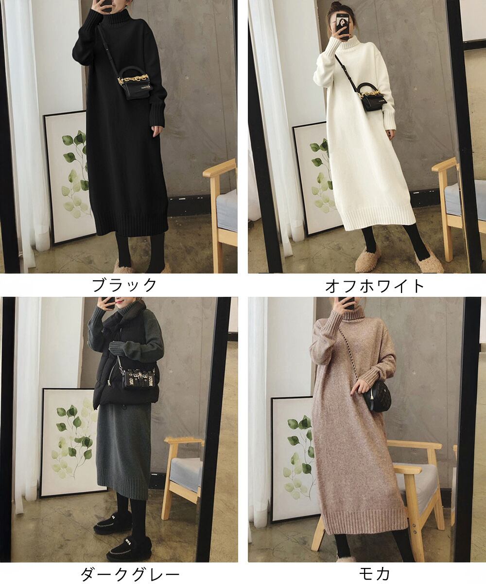 レディース タートルネックロングワンピース こなれ感 着回し厚手インナーワンピース エレガントセーターワンピ 無地暖かい