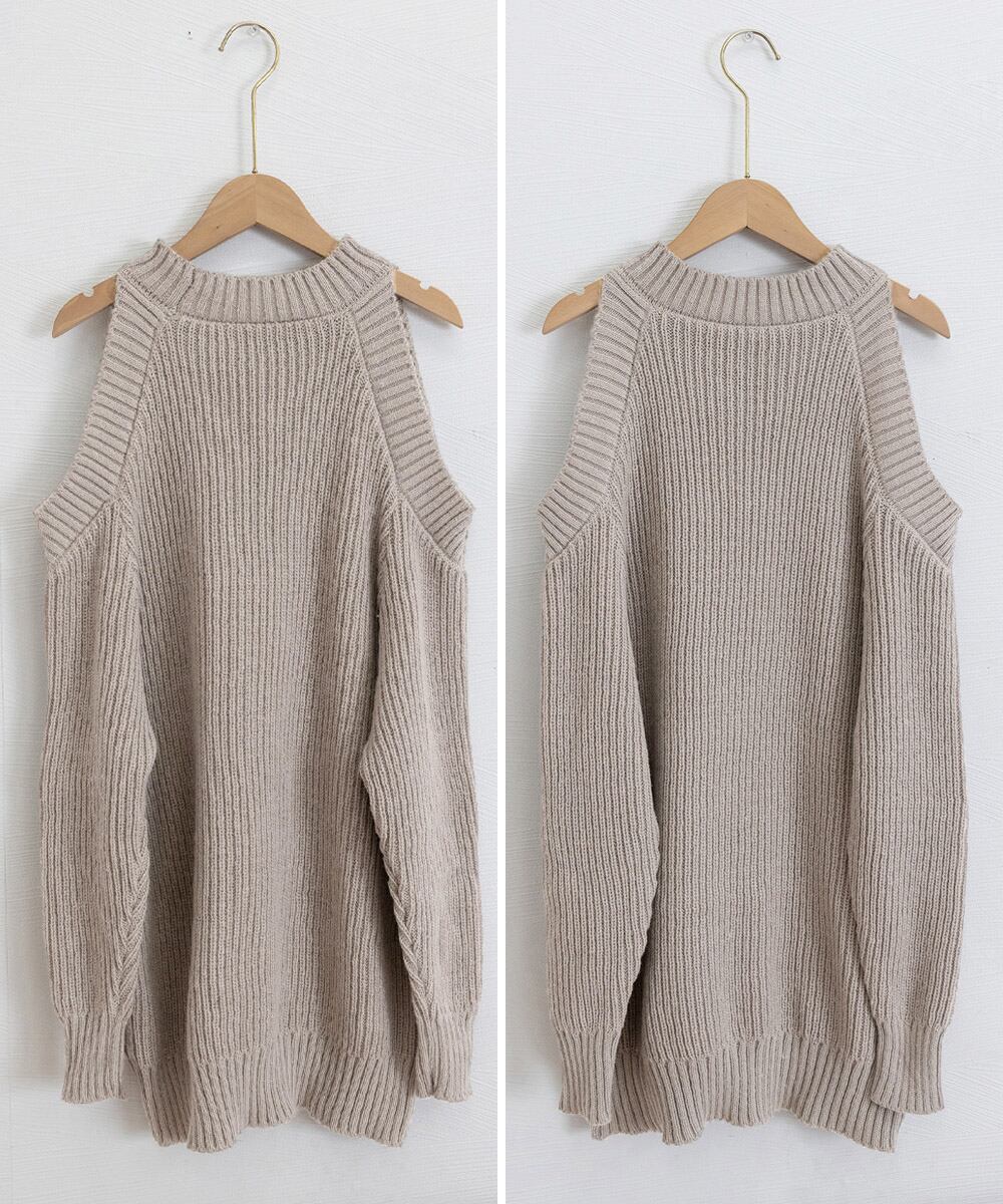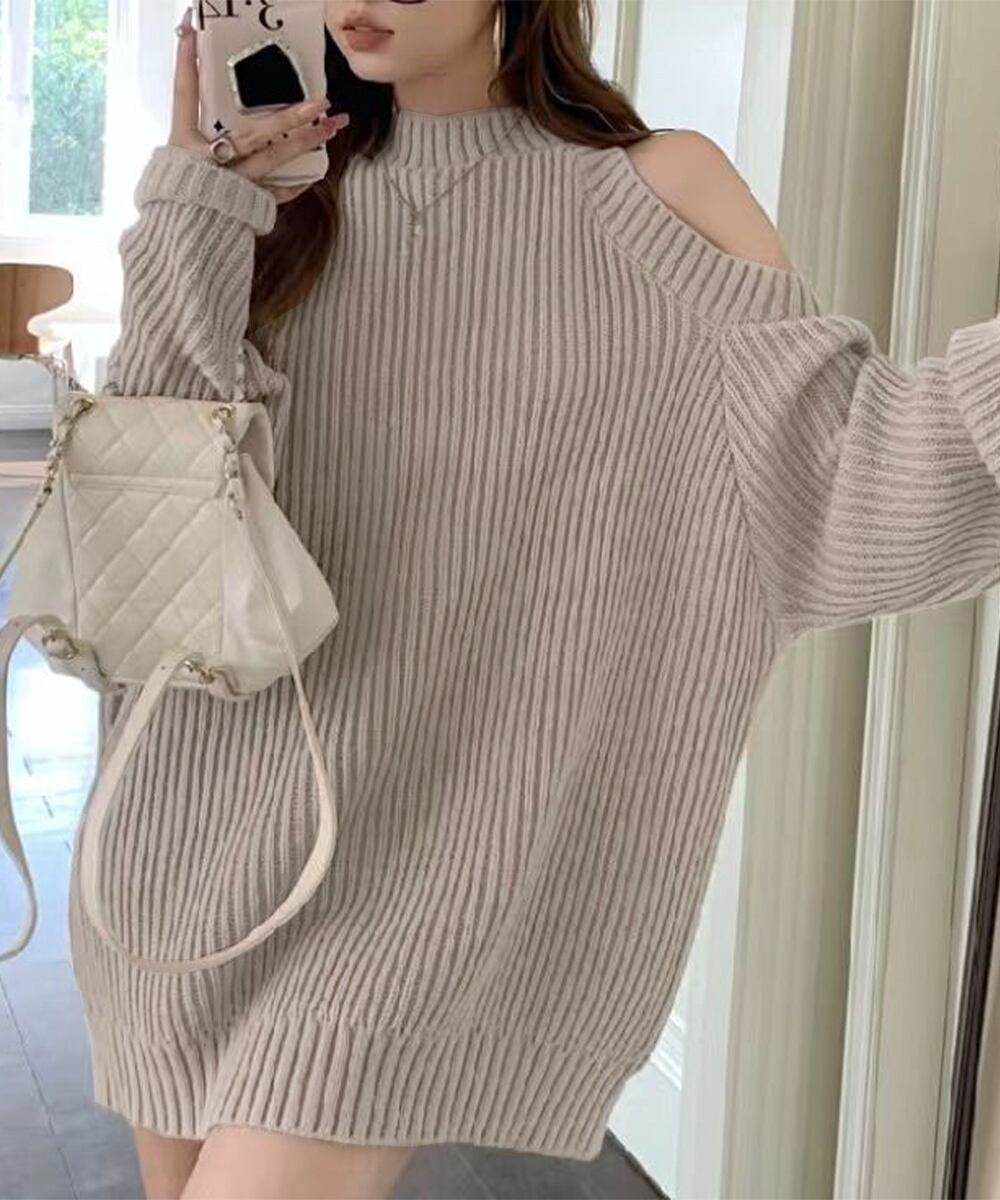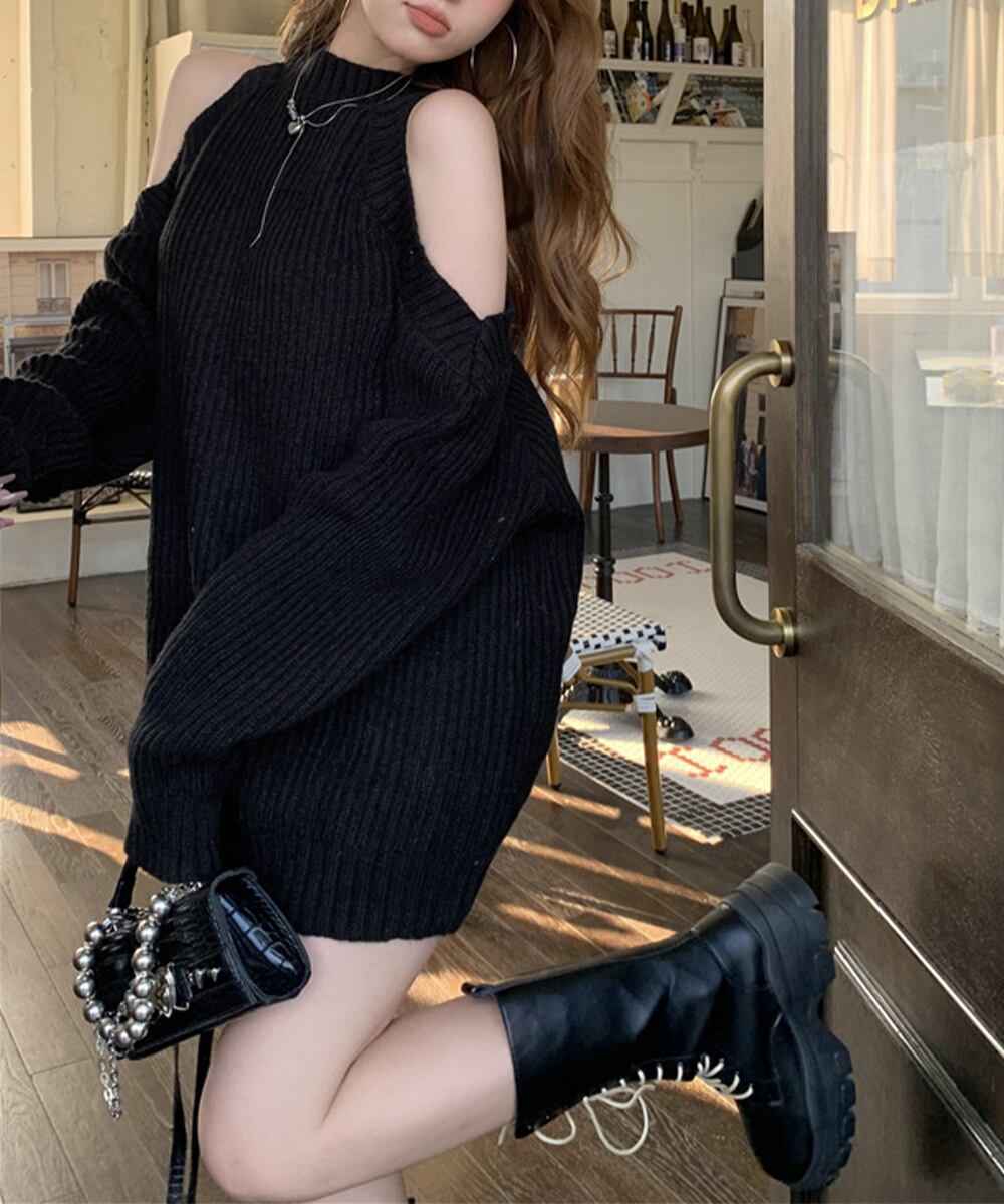 オープンショルダーニットワンピースミニ丈