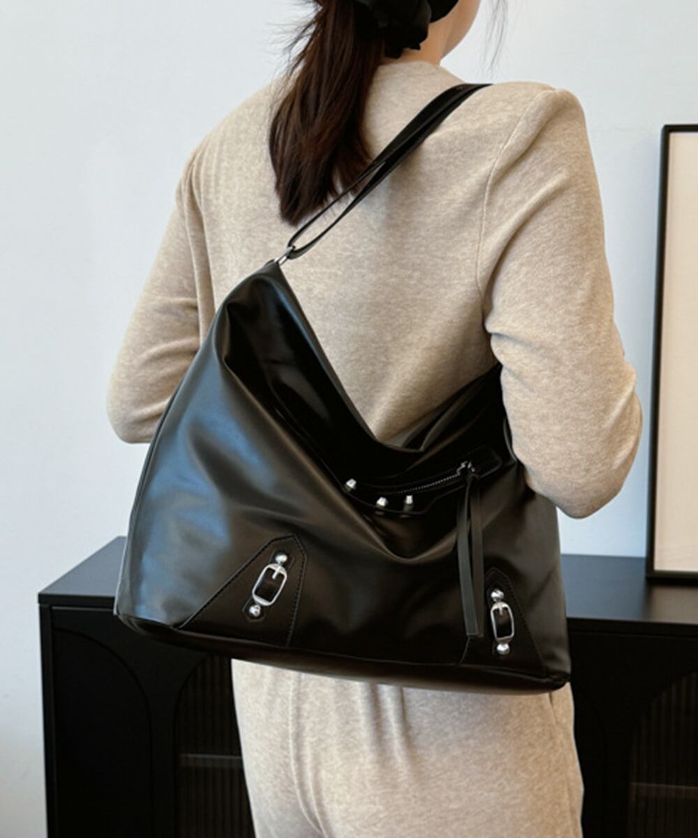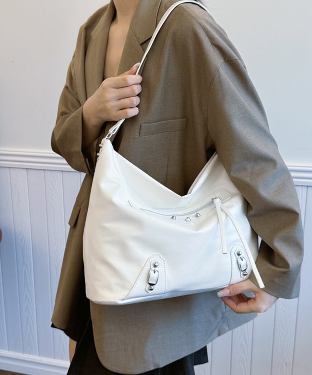 フロントのジップポケットやベルト調のデザインがアクセントになり、持つだけでこなれ感をプラスしてくれる。