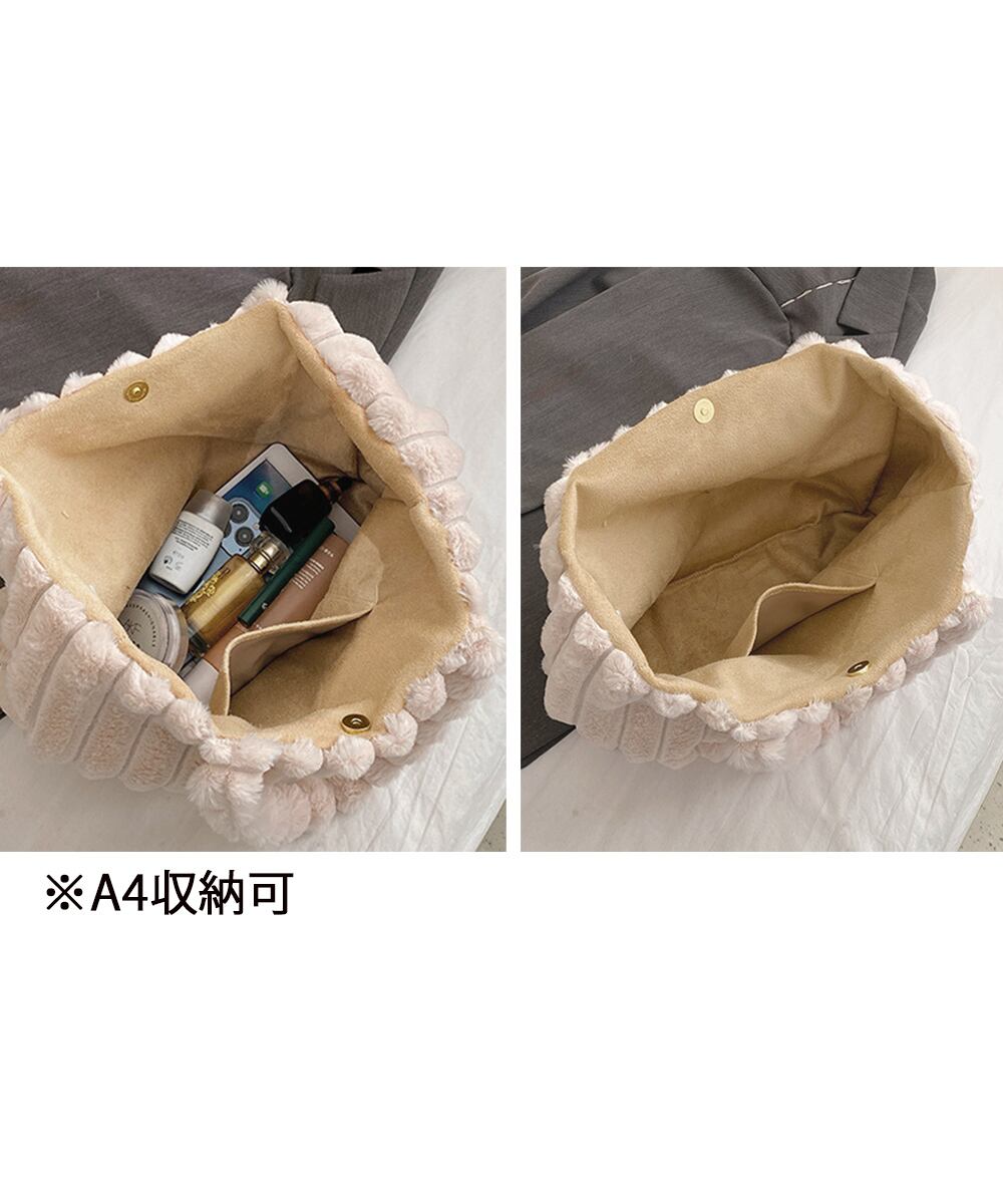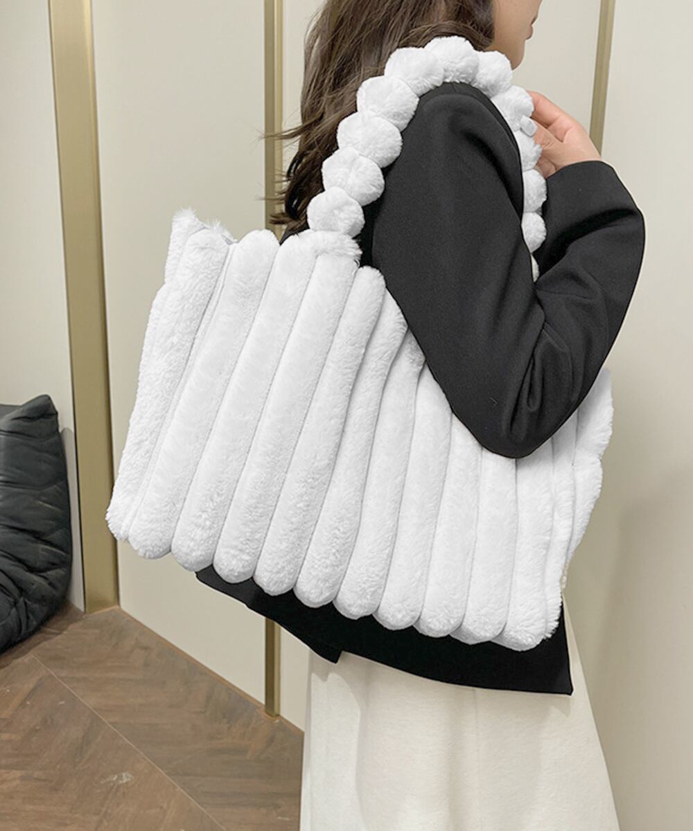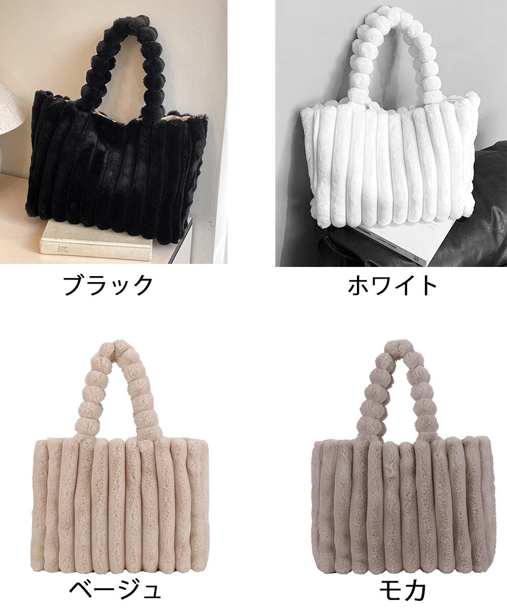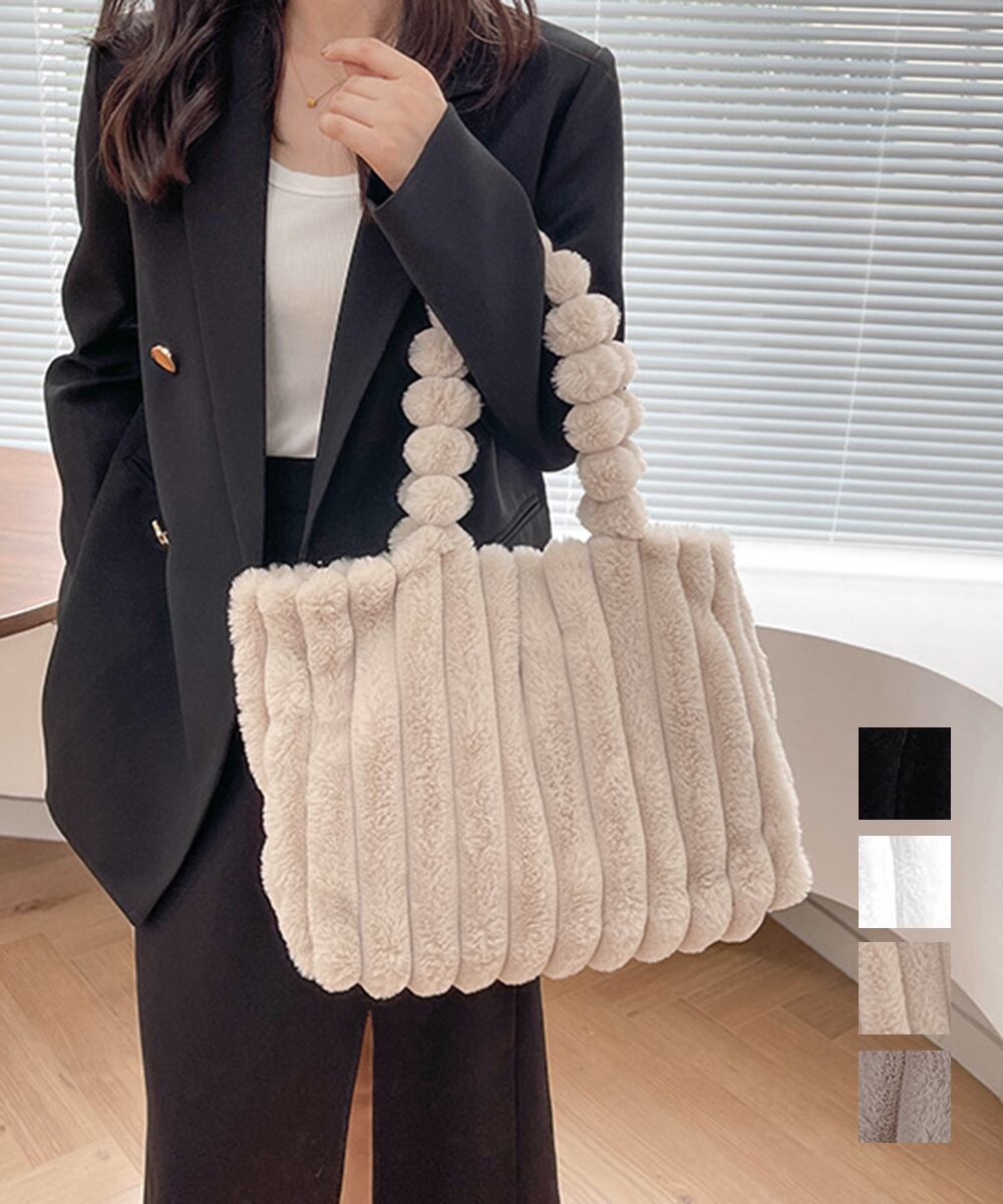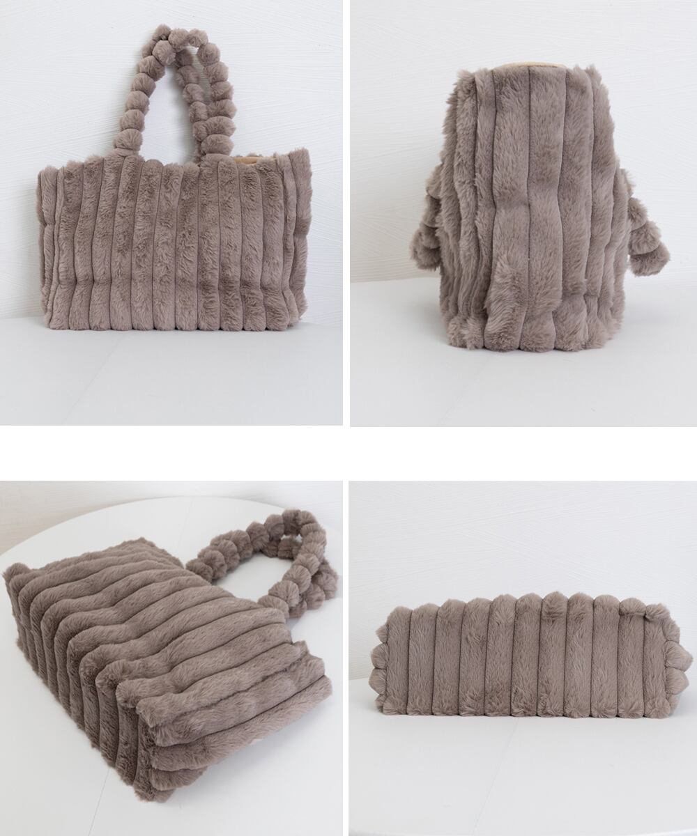 肩掛けバッグ ふわふわ a4対応 ハンドバッグ 大人可愛い 通勤通学 手提げかばん 縦ライン エコファーバッグ 2way