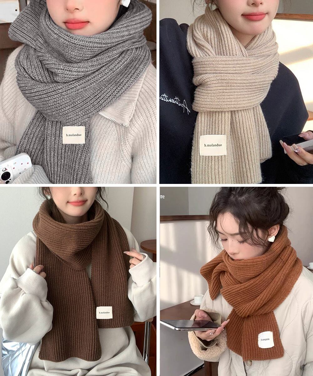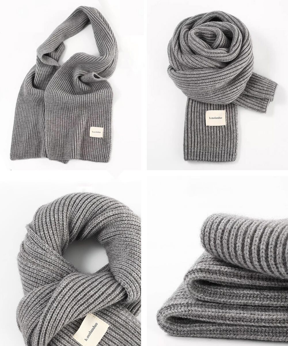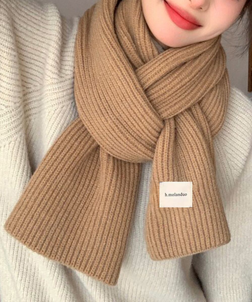 秋冬の装いに欠かせない、高級感あふれるリブ編みニットマフラー。