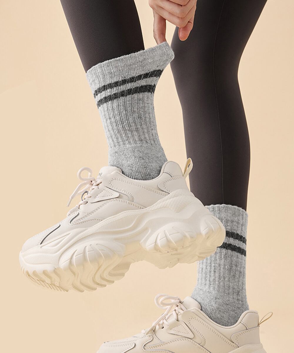 ブーツやスニーカー、ルームシューズに合わせて、冬のおしゃれと快適さを楽しめる。