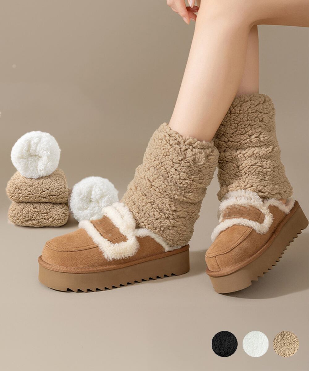 寒い季節にぴったりなもこもこ素材のショート丈ボアレッグウォーマー。