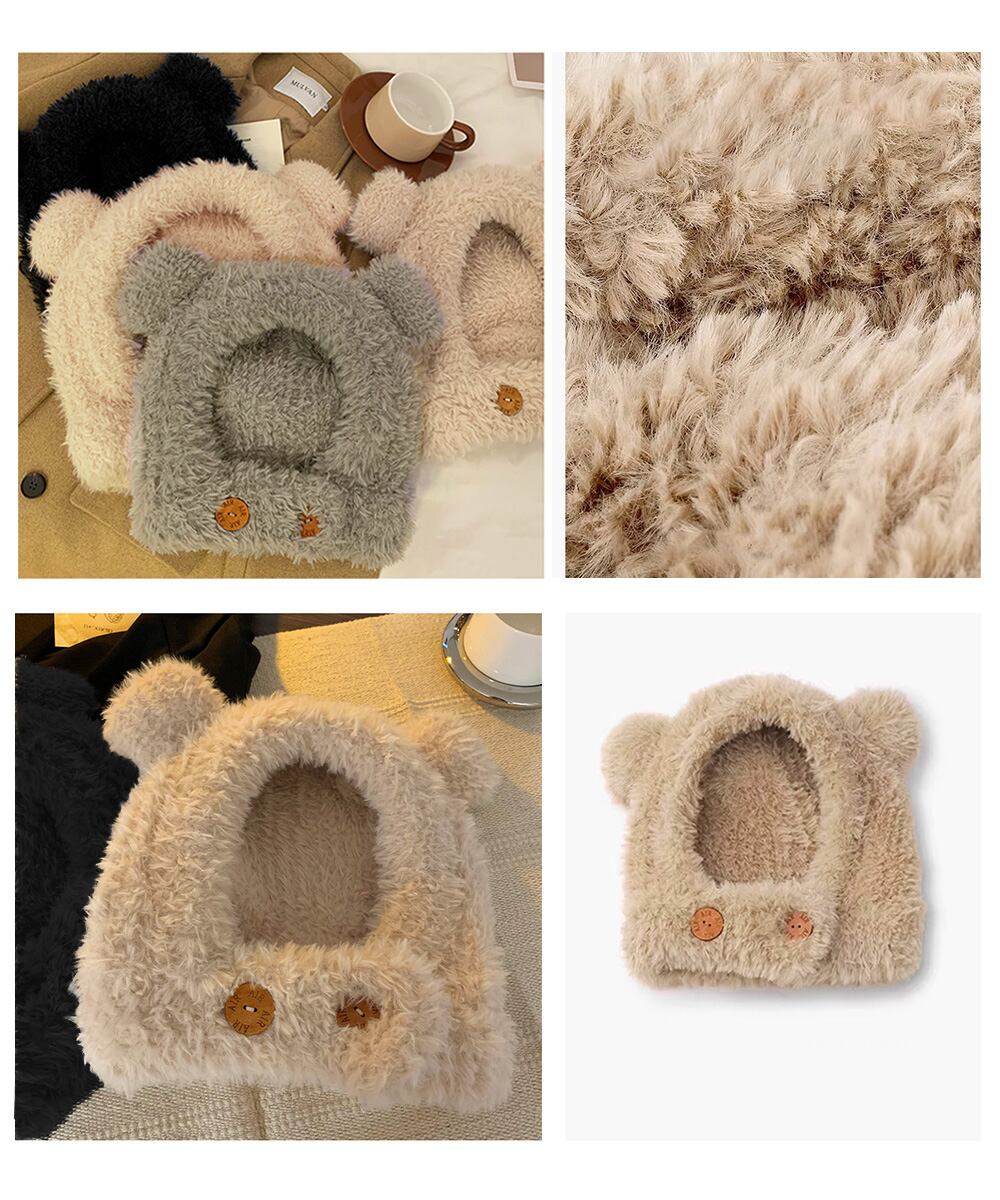 ボア帽子もこもこ 暖かいニット帽熊耳 モフモフアニマル帽子大人可愛い 小顔帽子レディース秋冬 おしゃれ 防寒対策帽子人気