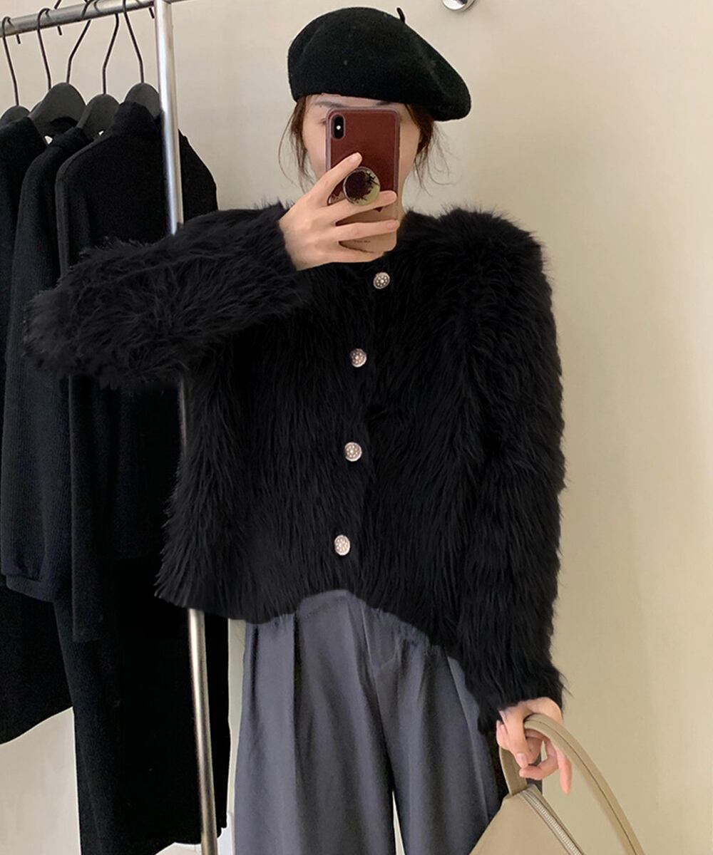 ふわふわの質感が魅力的なショート丈シャギーカーディガン。
