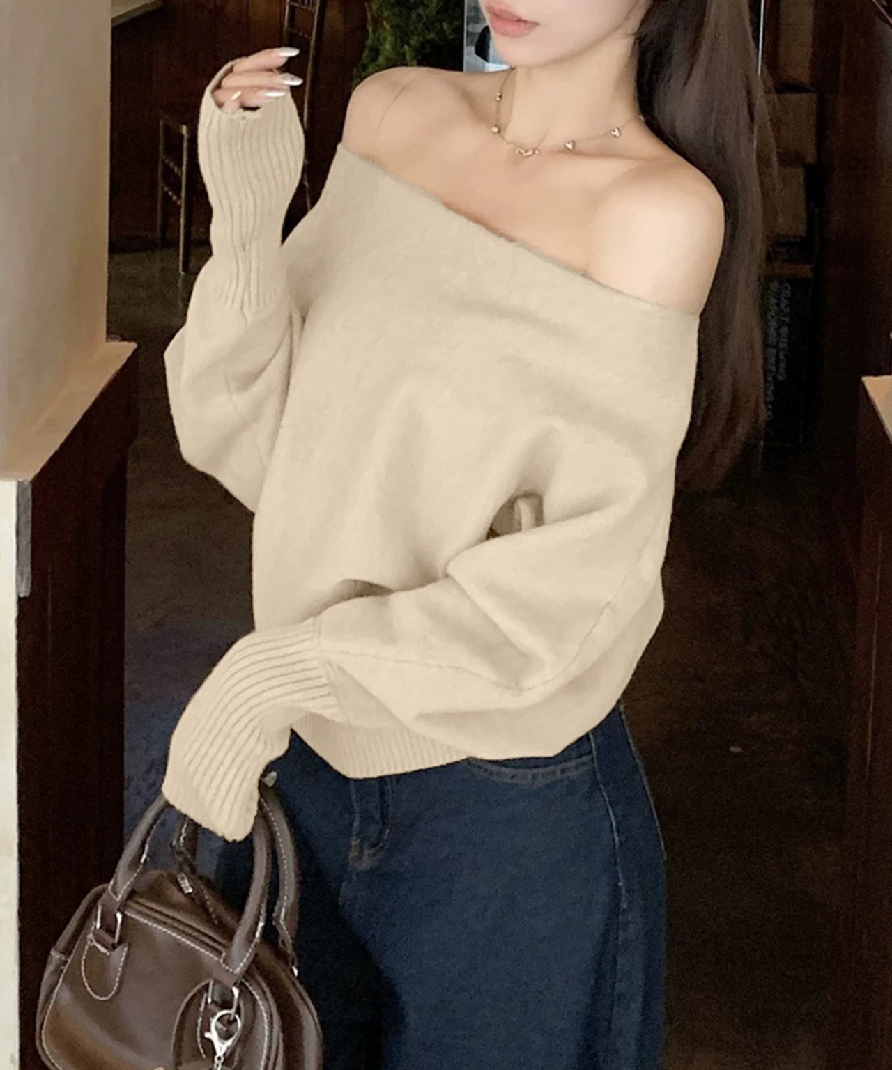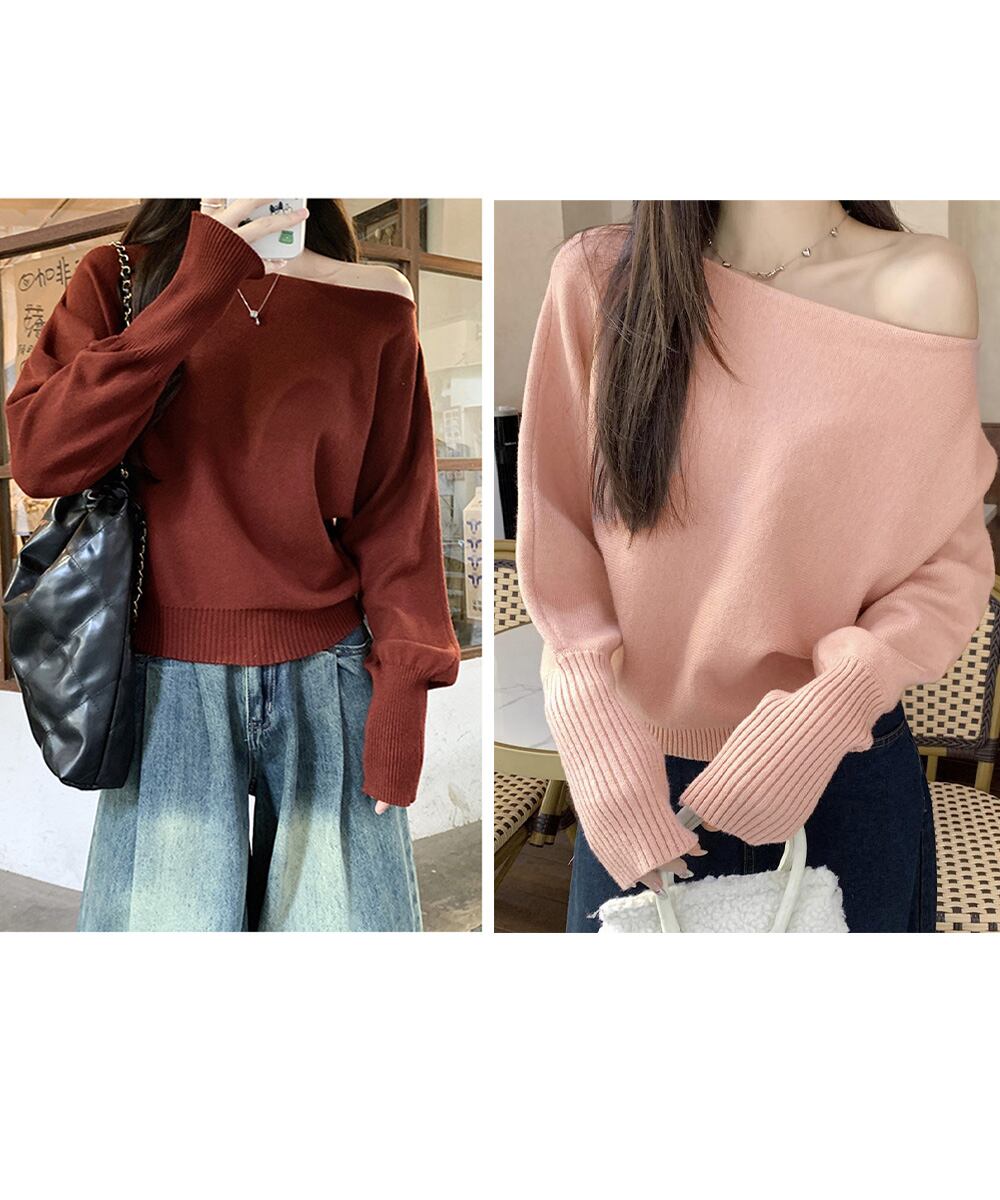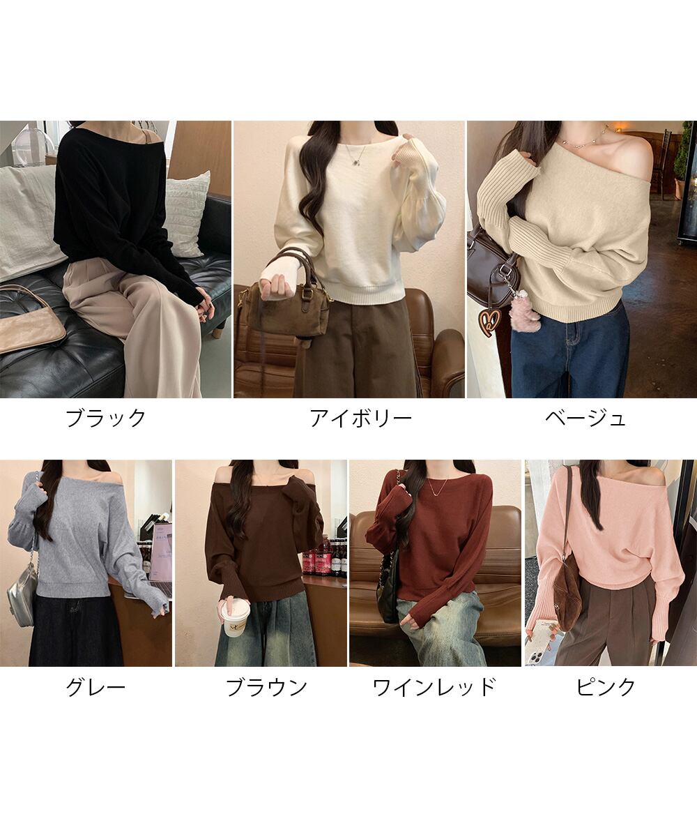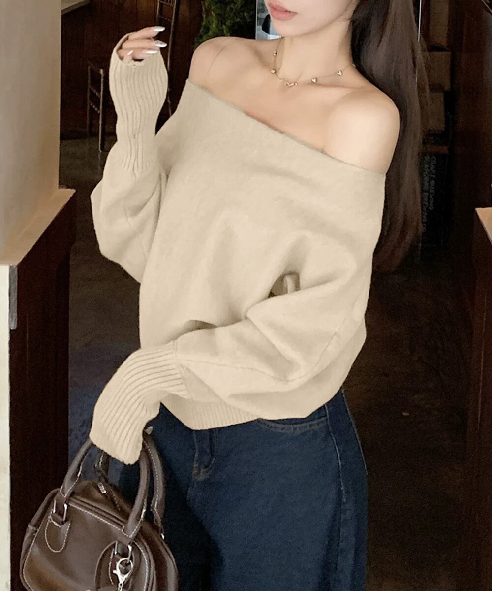 ボートネックニットトップスオフショルダー