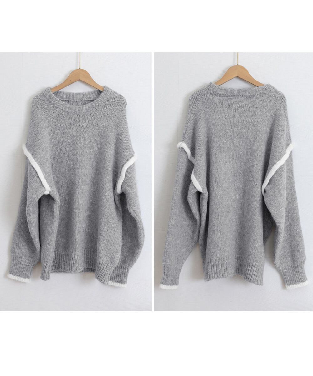 ゆったりニットトップスラウンドネック冬服