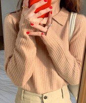 襟付きニット秋冬服 大人可愛いトップス セーターきちんと感