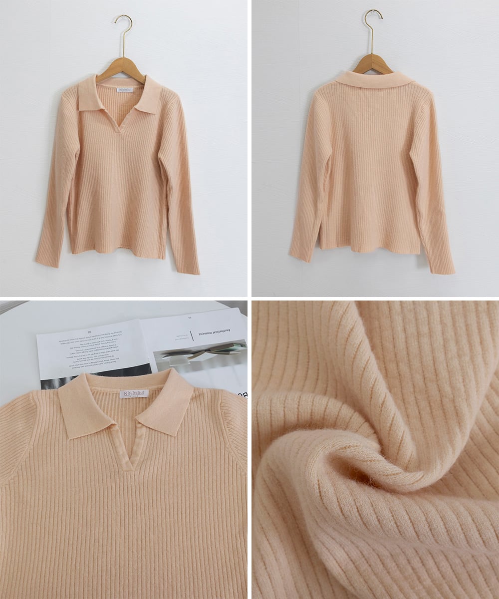 小さめのVネックラインが顔まわりに抜け感をプラスするリブ編みスキッパーニットトップス。