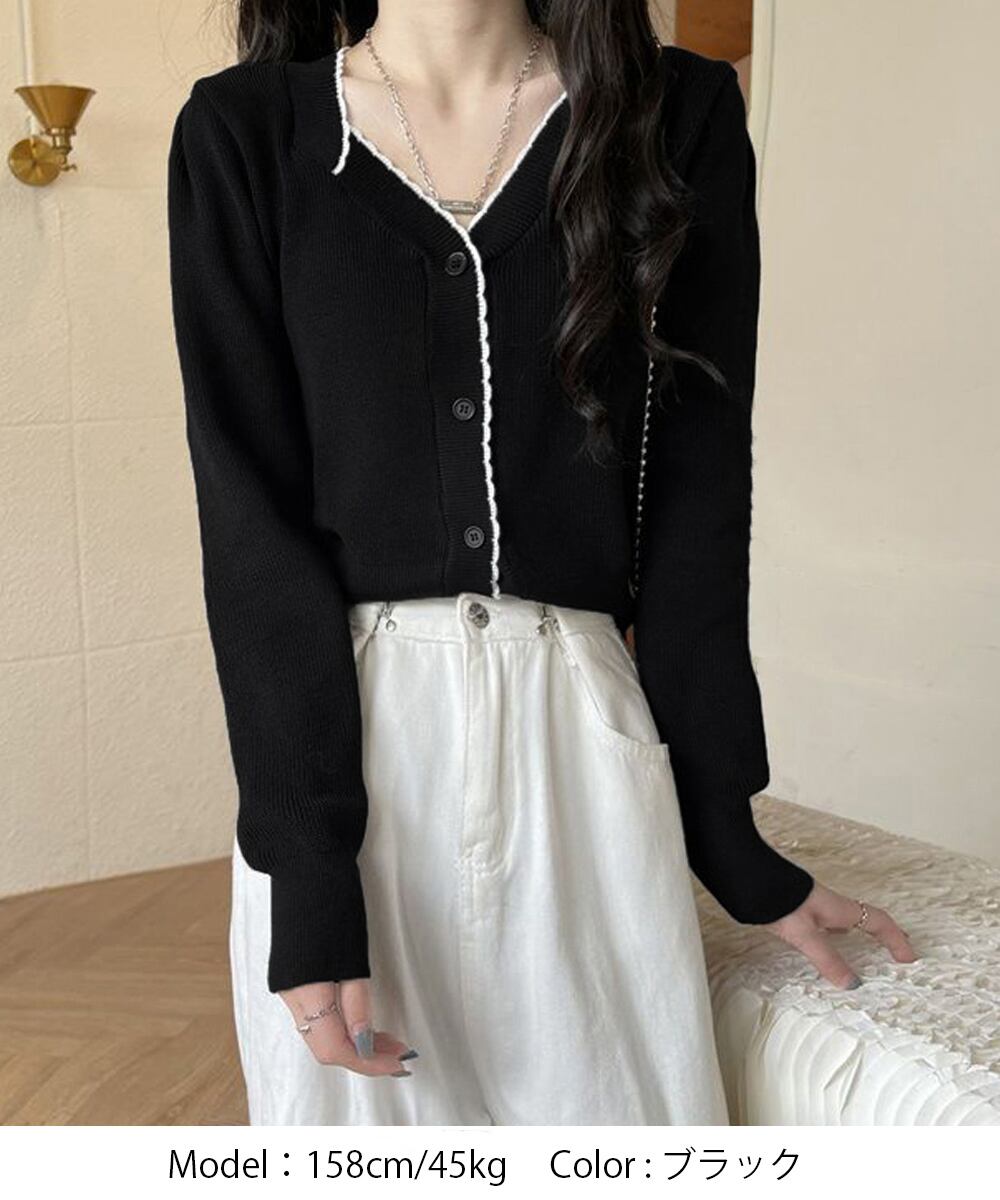 リブニット 配色 前開き 大人 きれいめ 通勤 着回し カーディガン カジュアル ニットウェア おしゃれ