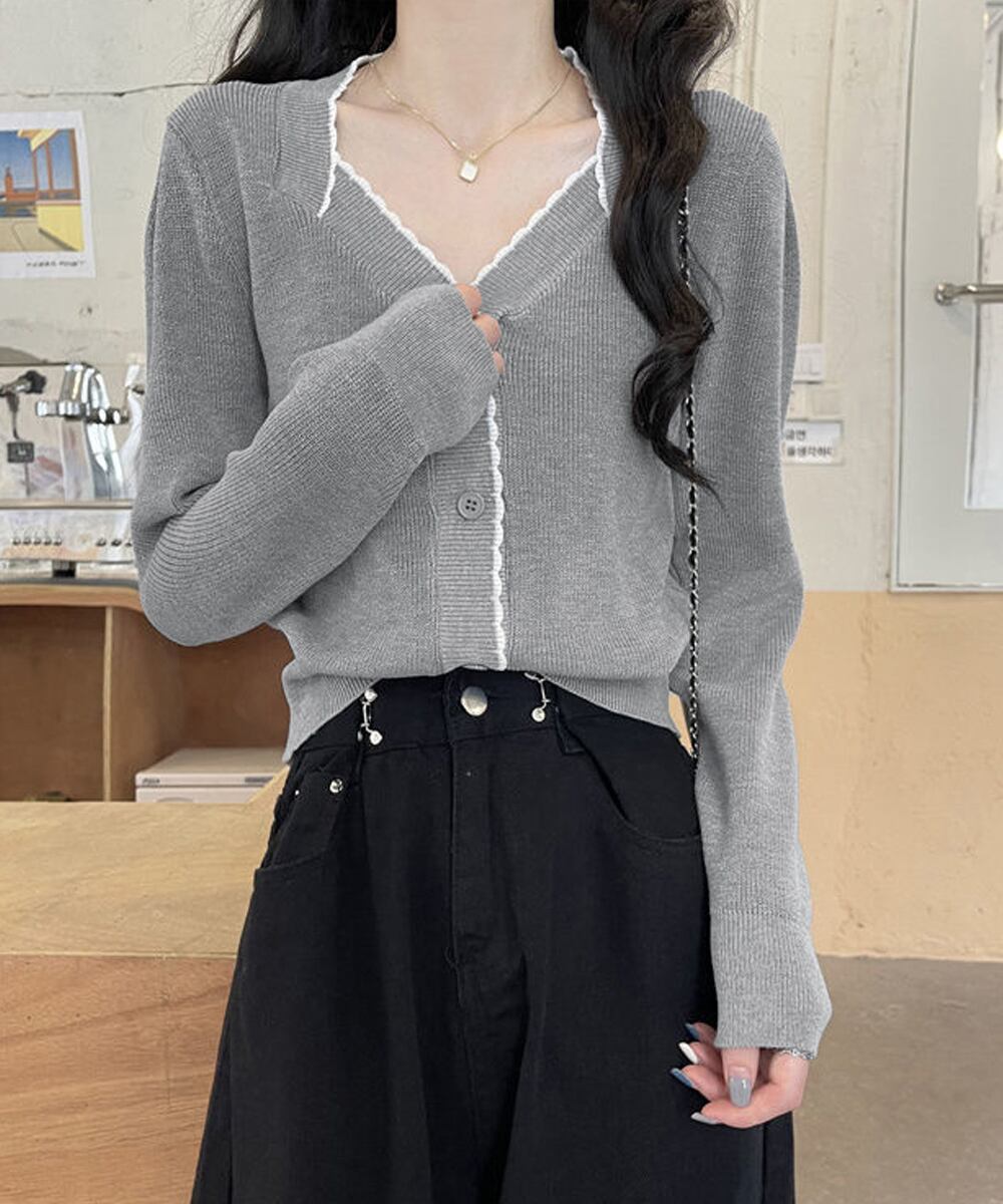 ニットソー 韓国風 カーディガン 長袖 大人可愛いトップス