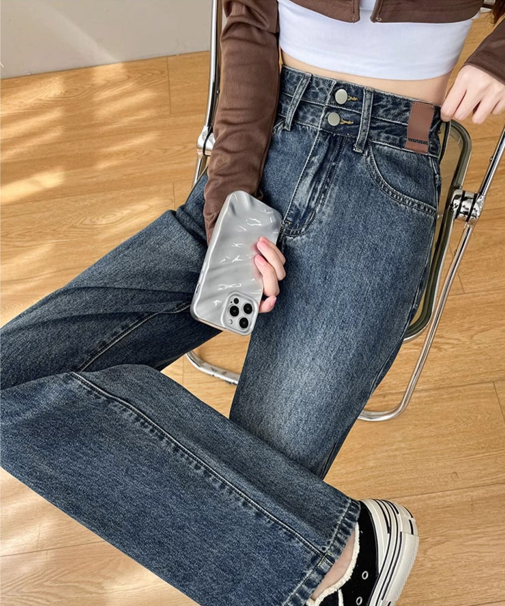 ストレートデニム レディースジーンズ 韓国風ウォッシュデニム 美脚脚長カジュアルパンツお洒落 セミワイドジーパン春夏秋冬