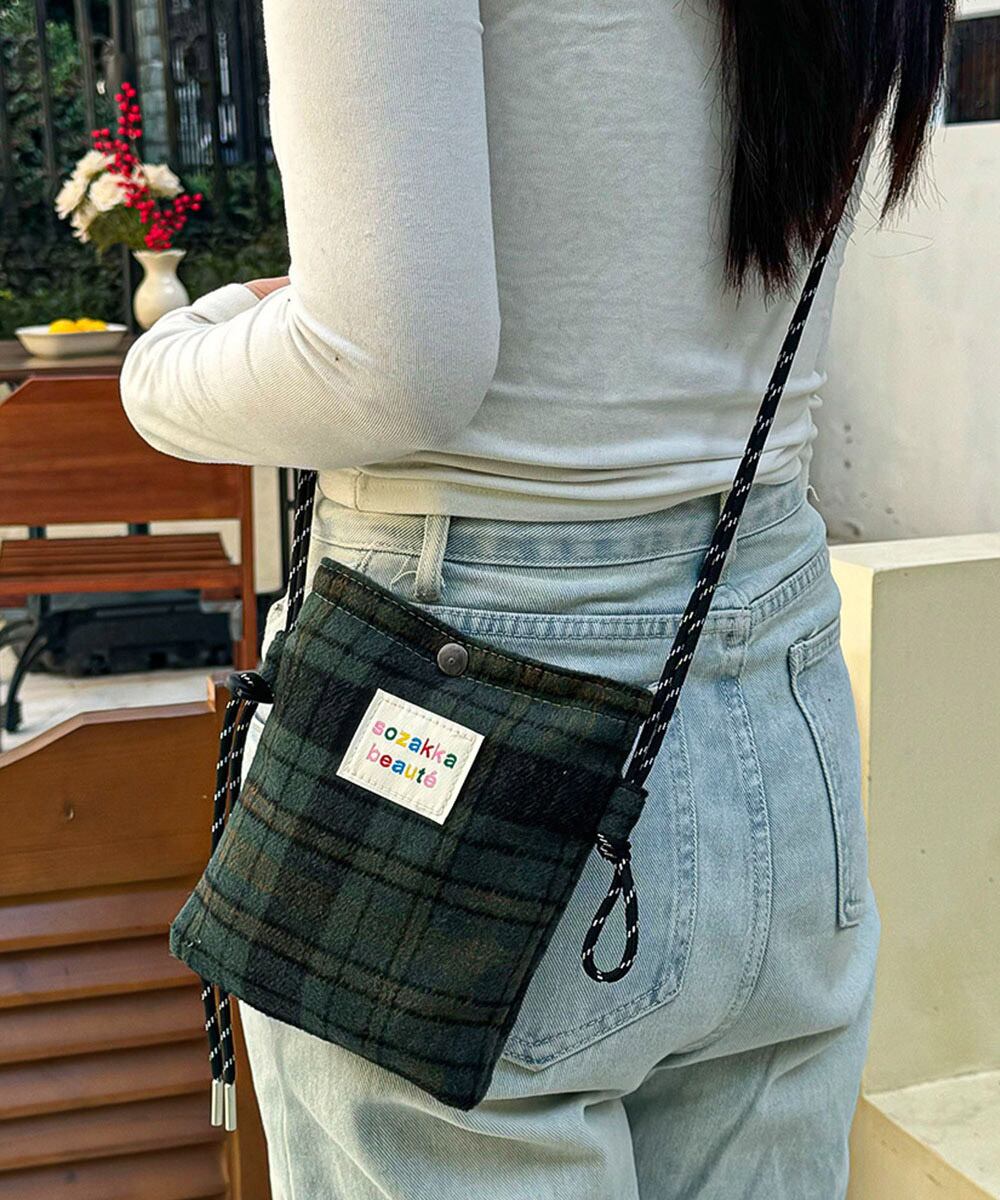 柄ものデザインがコーデに映える、ウール調素材を使用した秋冬新作の斜め掛けショルダーバッグ。