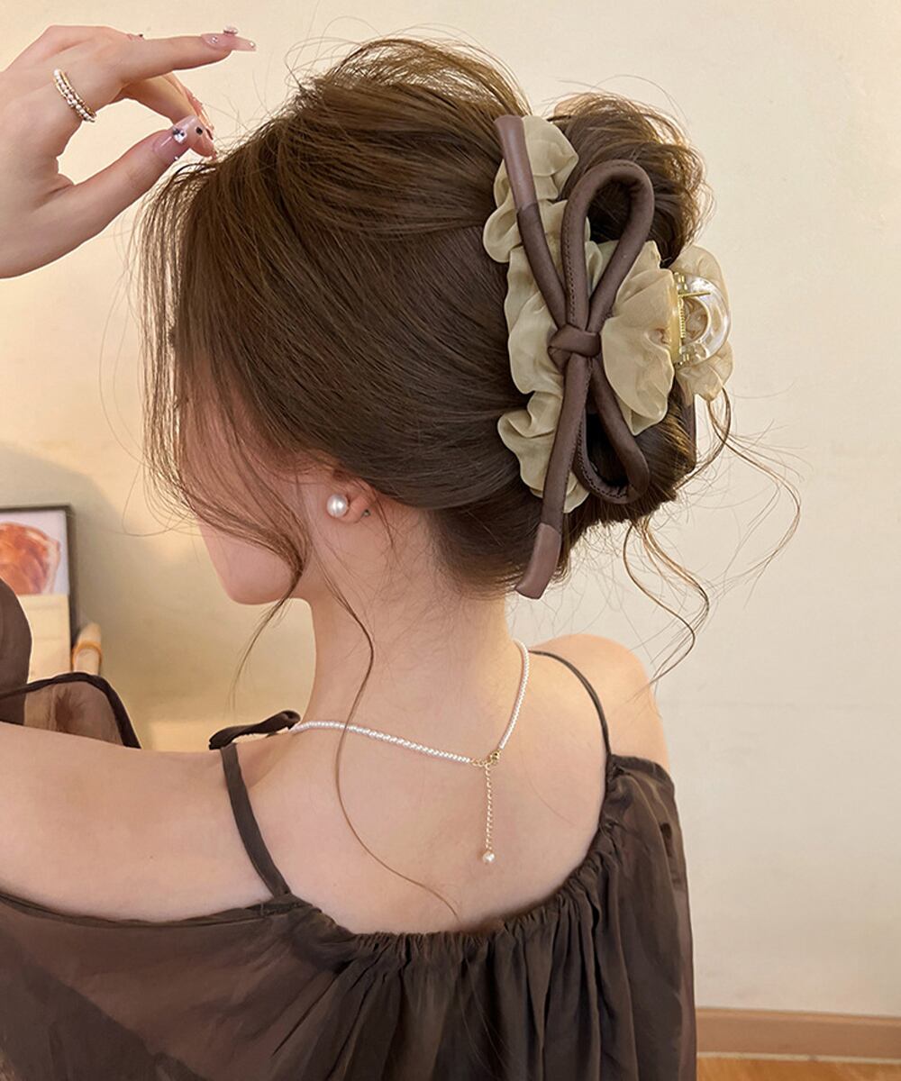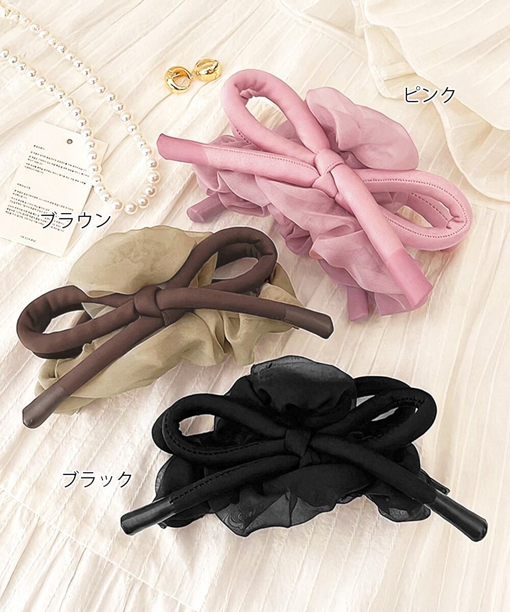エレガントなシアー素材とリボンが上品な印象を与えるヘアアクセサリー。