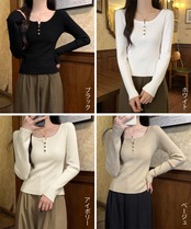 シンプルニットソー 普段着細身トップス リブニットおしゃれ