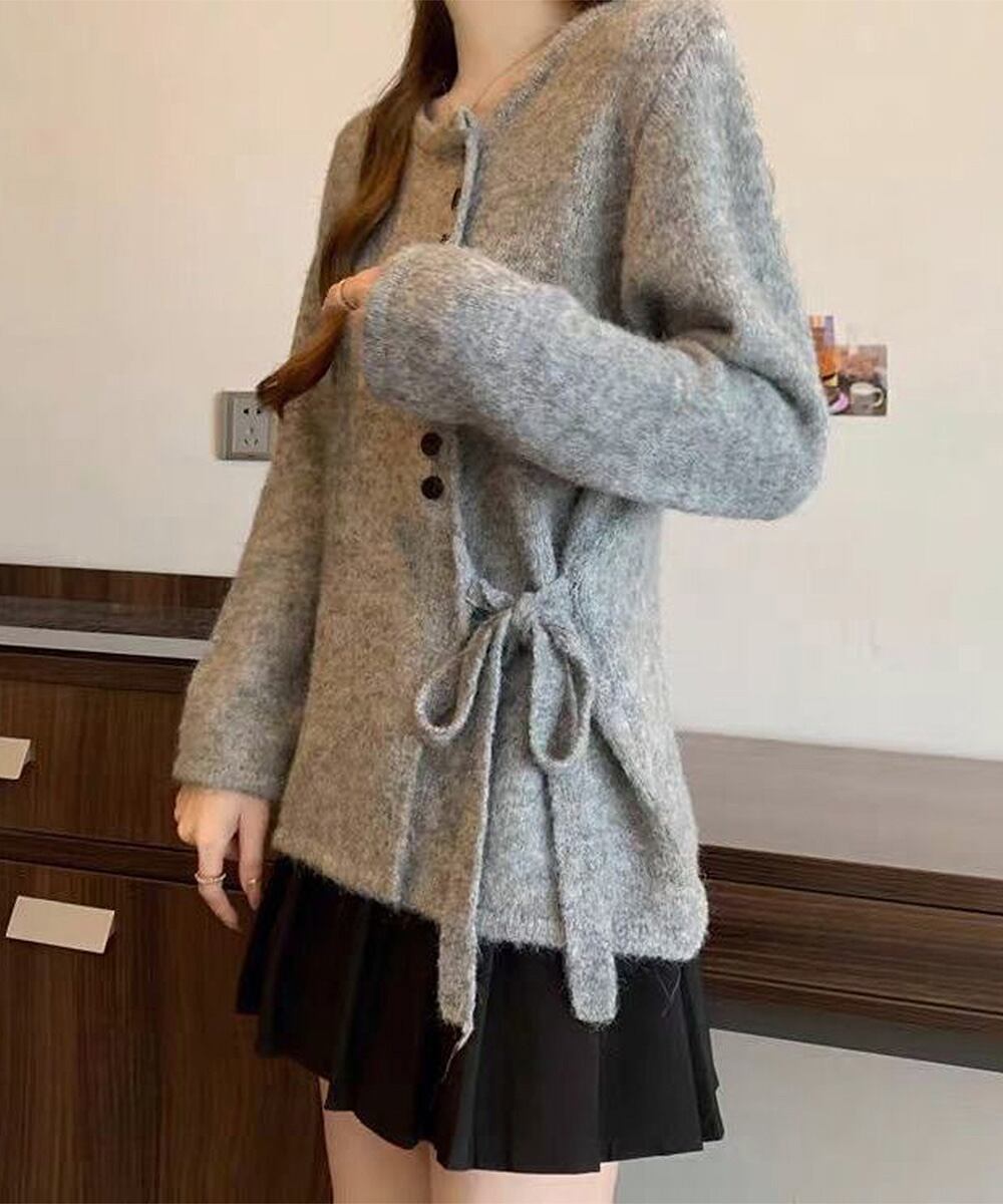 トレンド感ディテールが映える、デザインリボン付きの長袖ニット。