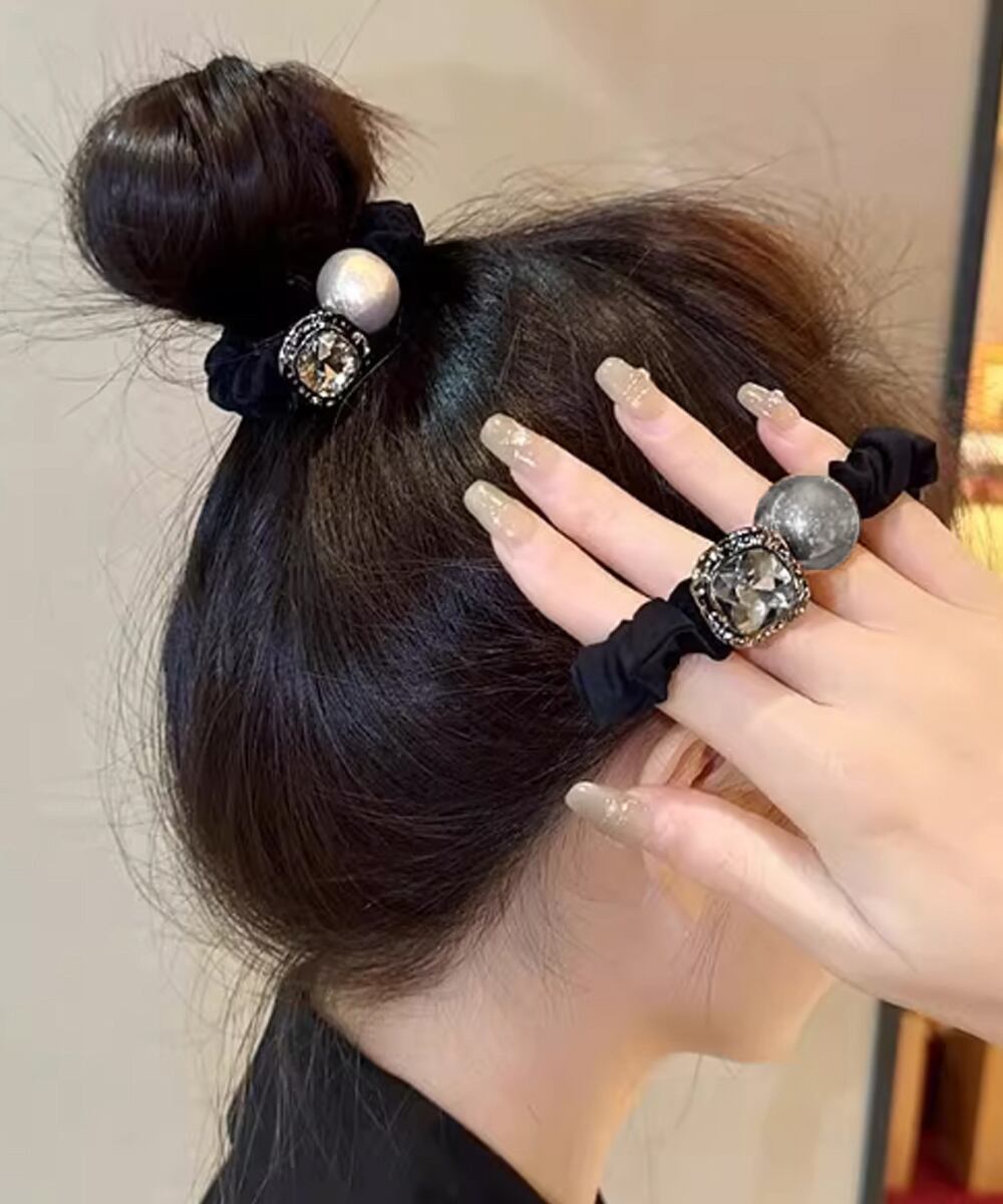 ゴム部分は伸縮性があり、髪をしっかりとまとめながらもおしゃれに仕上がる。