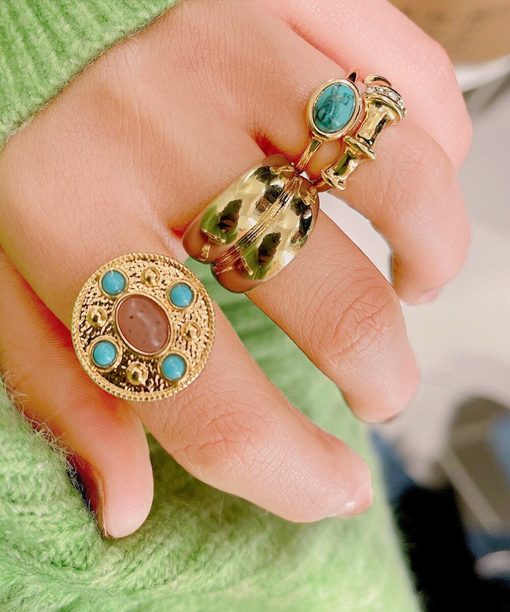 ターコイズリング 4ピースリング レディース 重ね付け 韓国風 アクセサリー おしゃれファッション小物 カジュアル