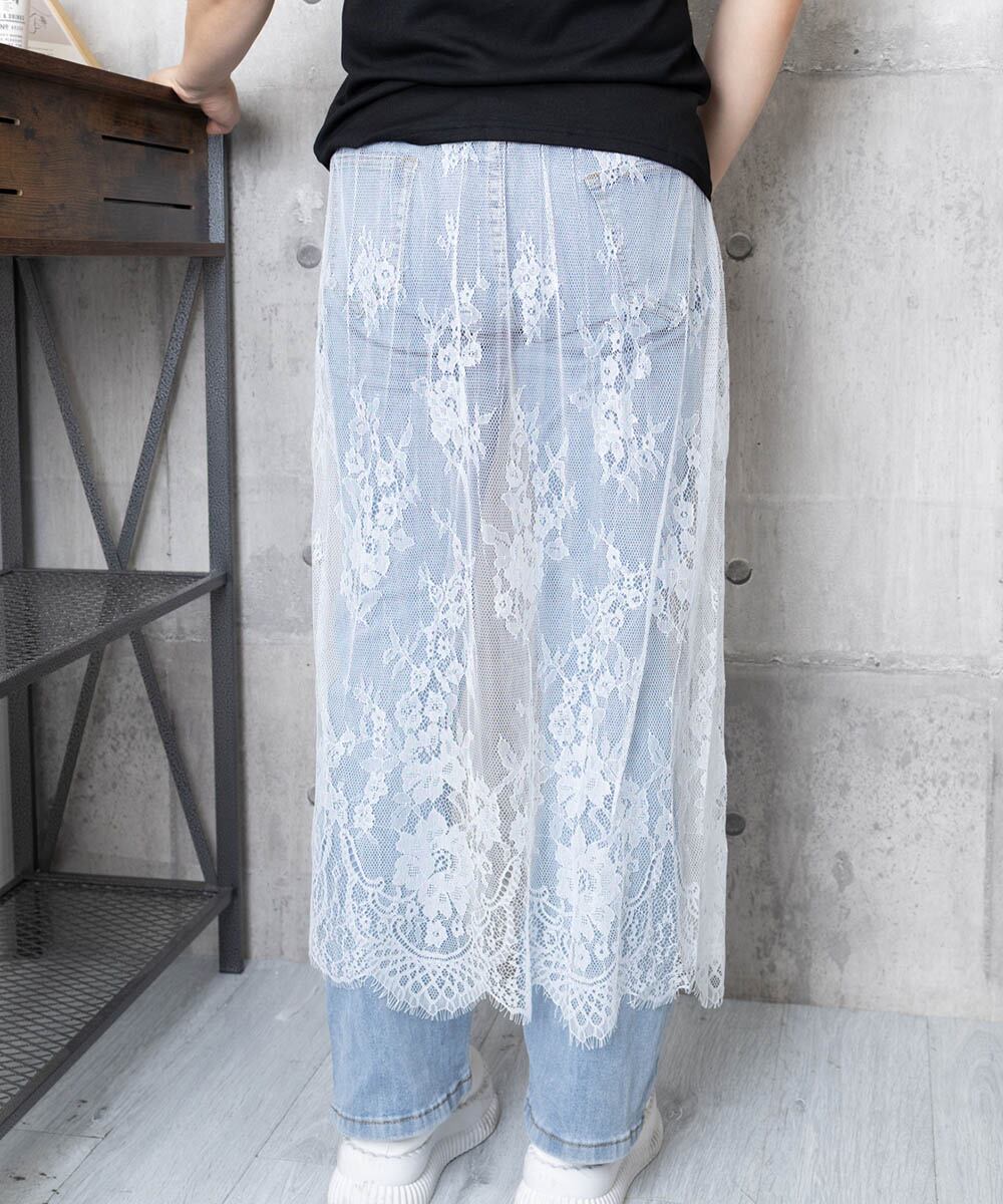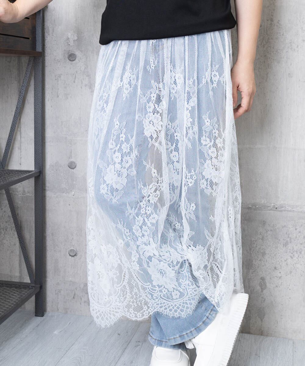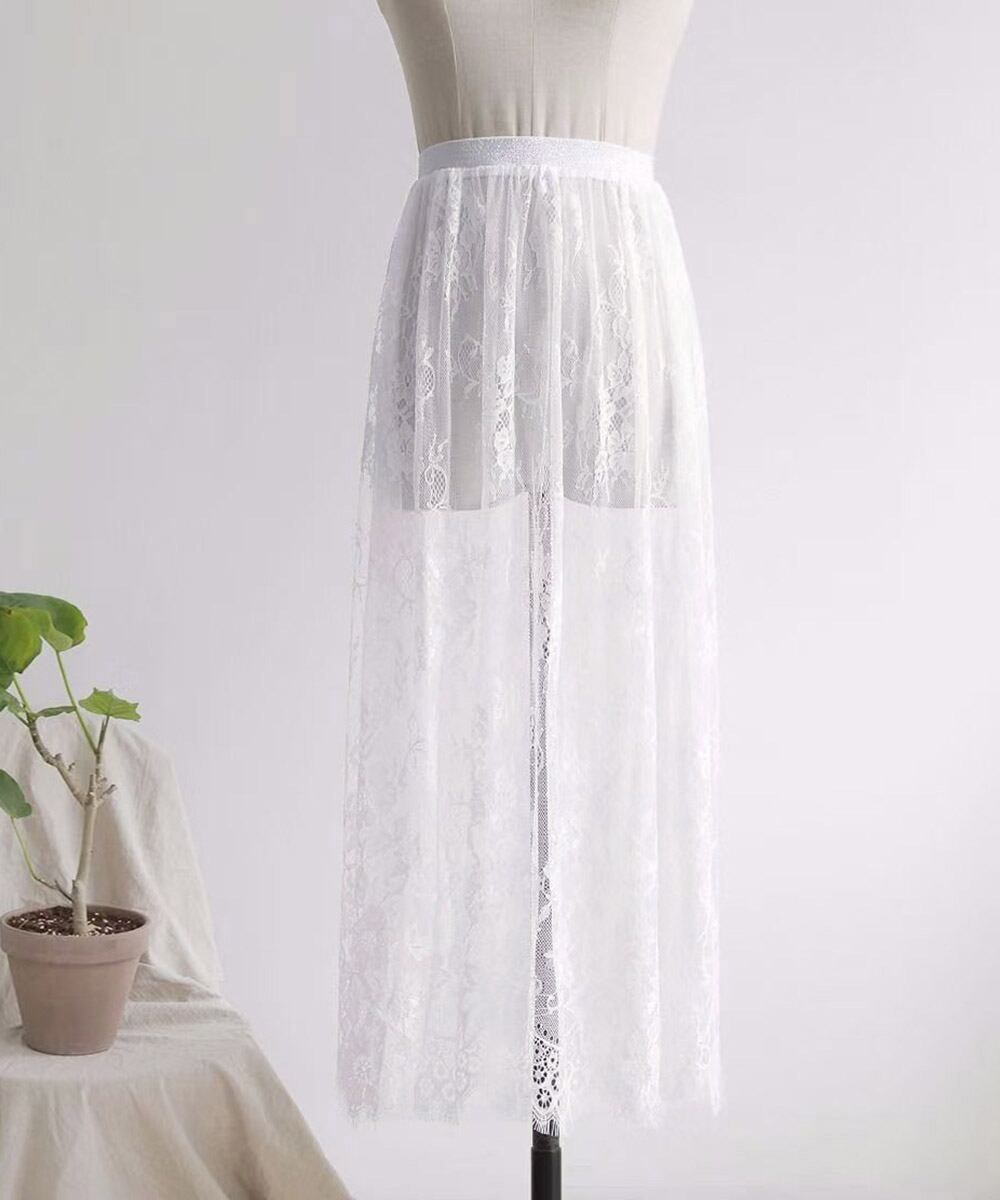 透け感 レーススカート 重ね着 ハイウエスト 大人可愛いボトムスレディース おしゃれ レイヤードスカート オールシーズン