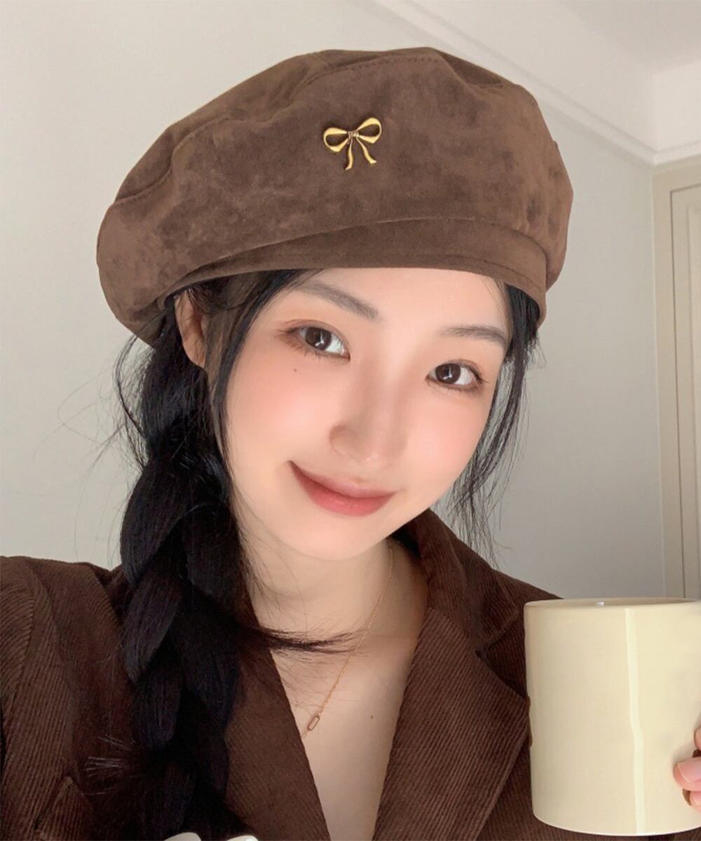クラシックな雰囲気を演出するスエード調ベレー帽。