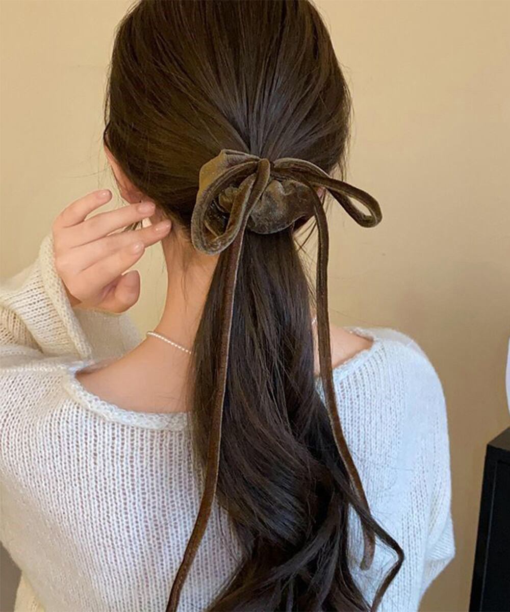 長めのリボンテールで、大人フェミニンな雰囲気に。