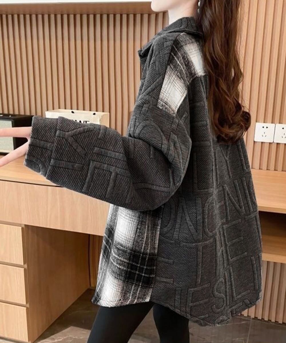 レディース 型押し羽織り オーバーサイズ ライトアウター 体型カバー ビッグシルエット春秋服 韓国風 シャツアウター長袖
