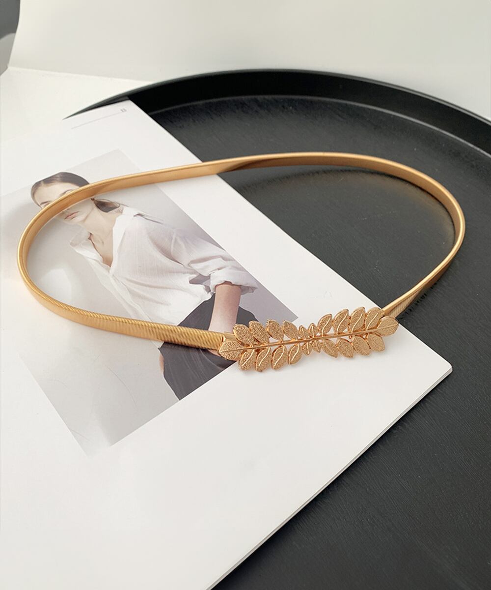 葉の形をしたバックルがアクセントになった細めのチェーンベルト。