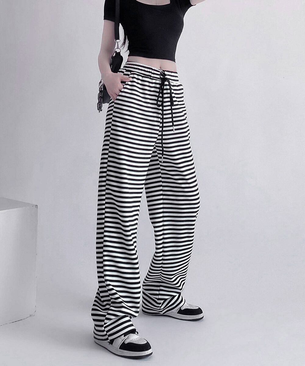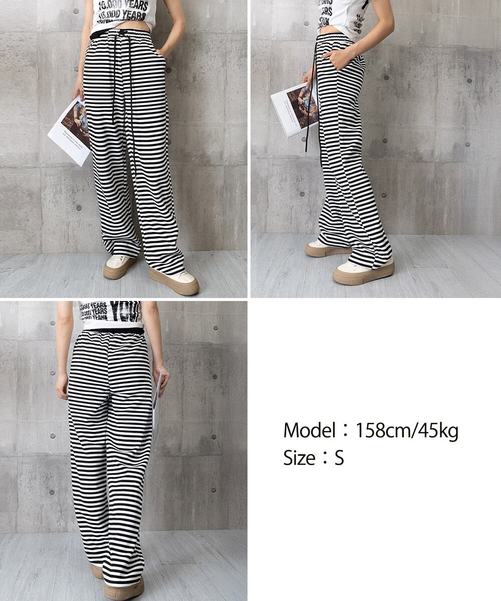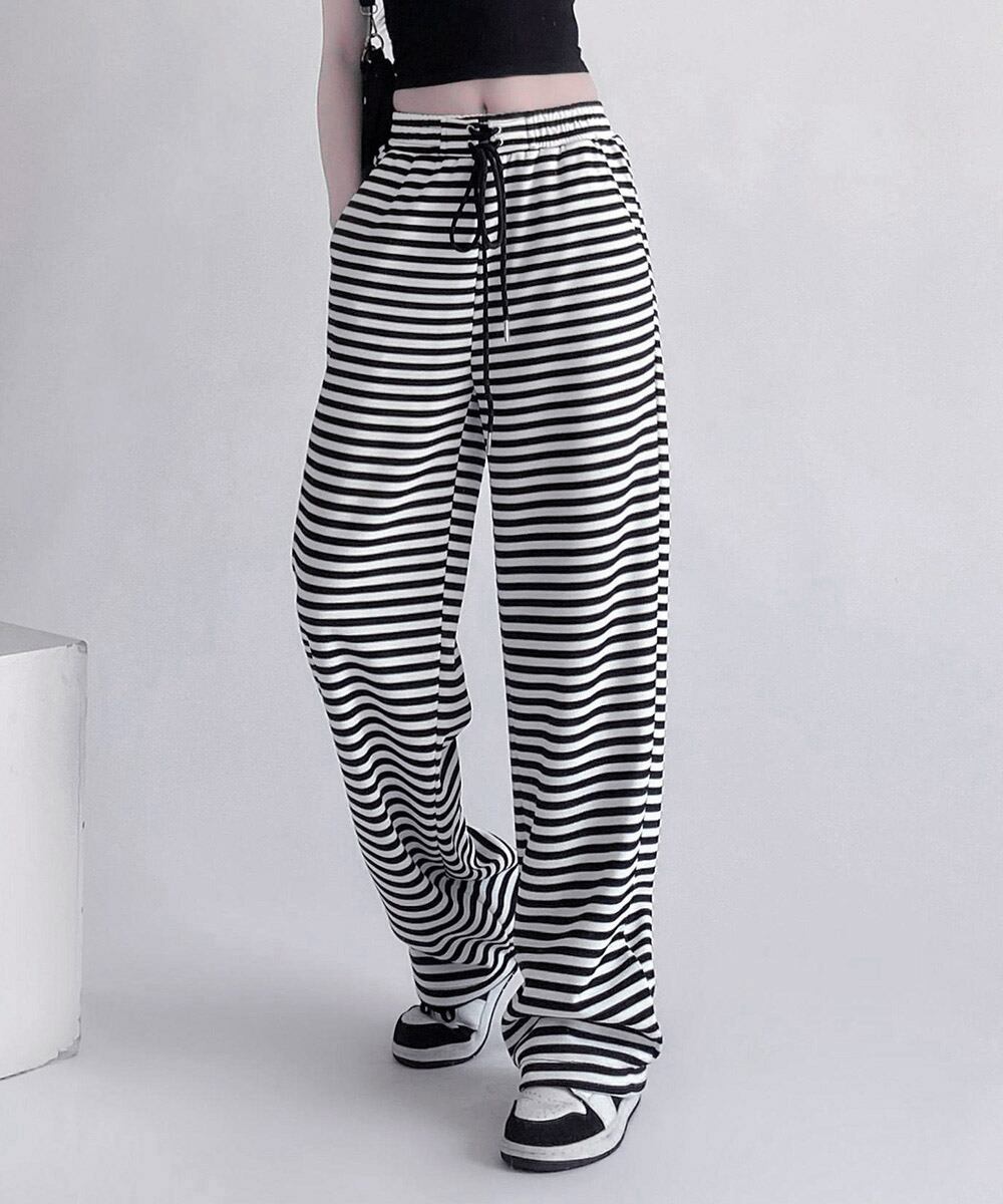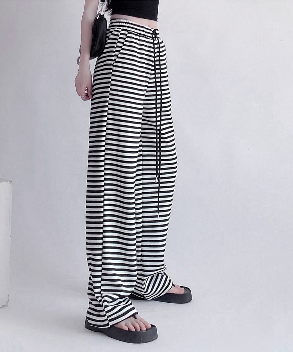モノトーンボーダーが目を惹く、セミワイドシルエットのリラックスパンツ。