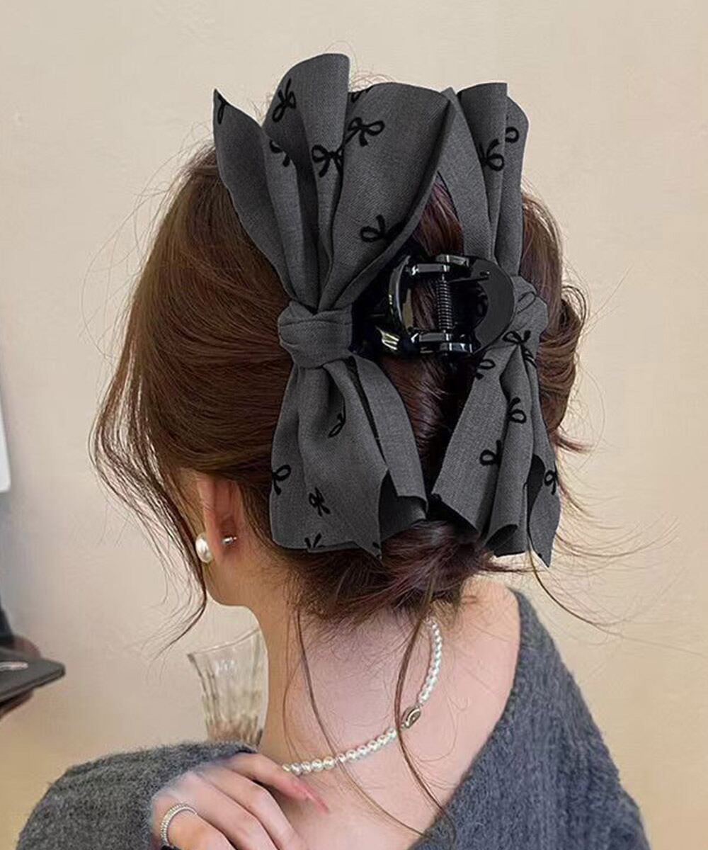 エレガントなリボンモチーフの大きめヘアクリップ。