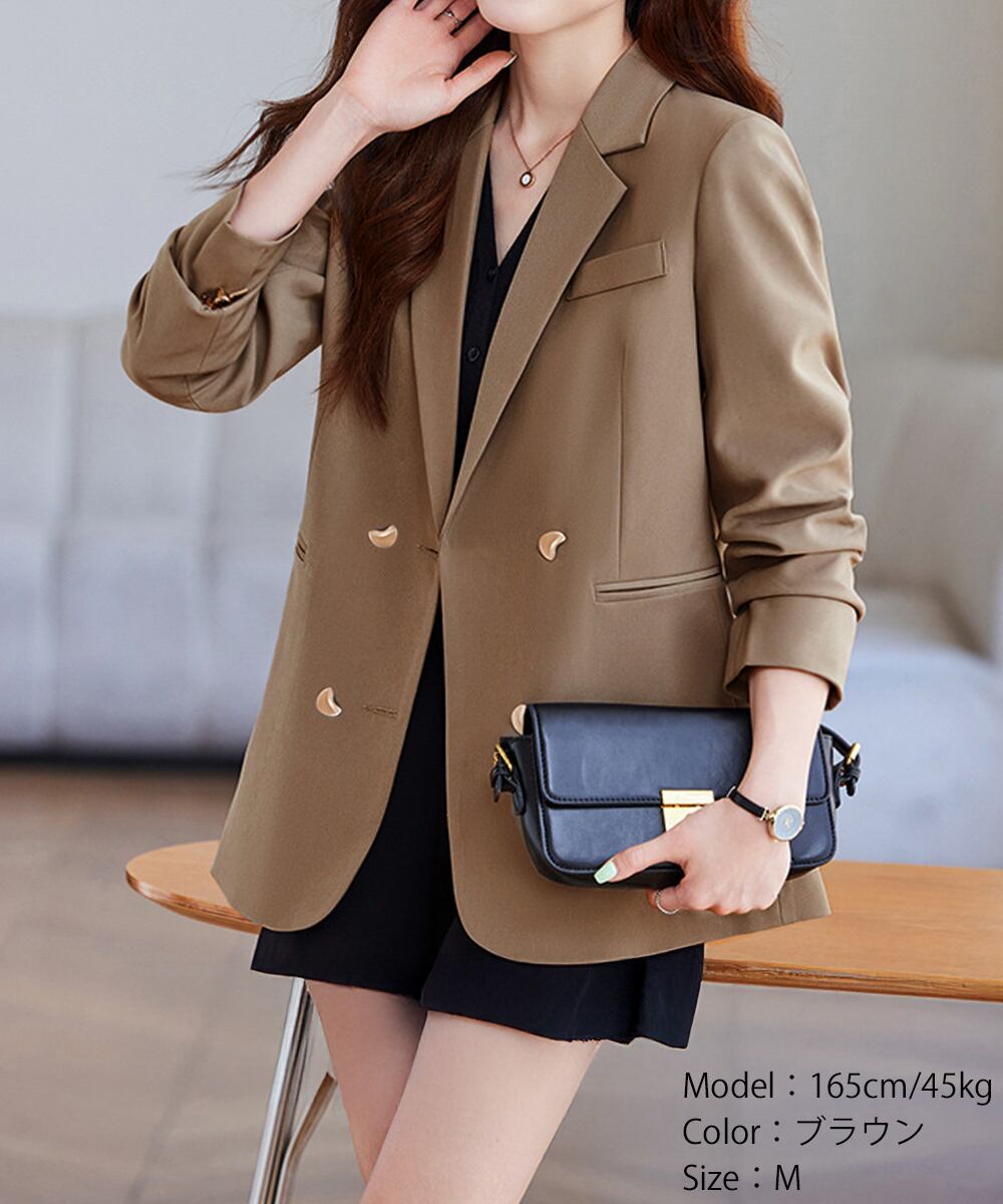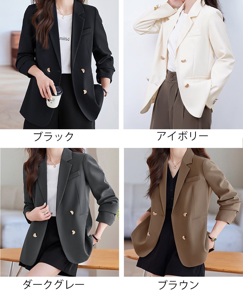 スーツジャケット ゴールドボタン オフィスカジュアル 韓国風ダブルブレザージャケット長袖 着やせ上着 ベーシックアウター