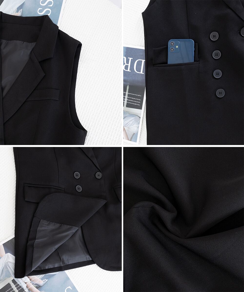羽織りジレきれいめ 重ね着秋服通勤通学 ダブルブレストジレ
