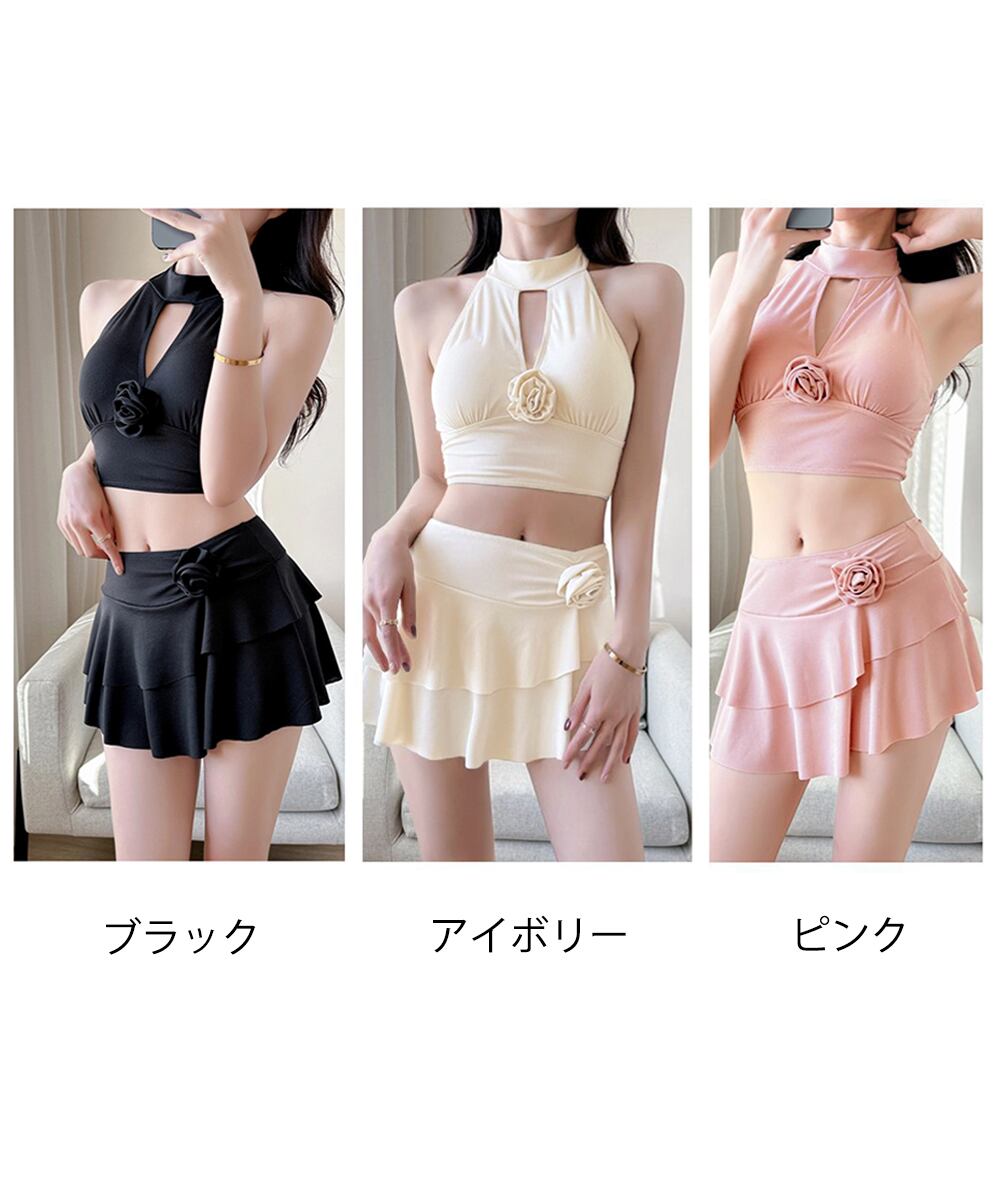 トレンド感あふれるビキニとフレアスカートの3点セット。