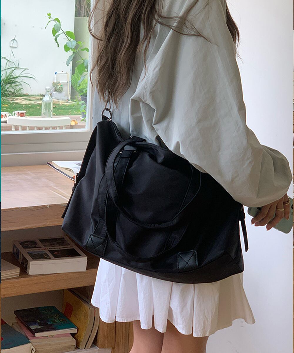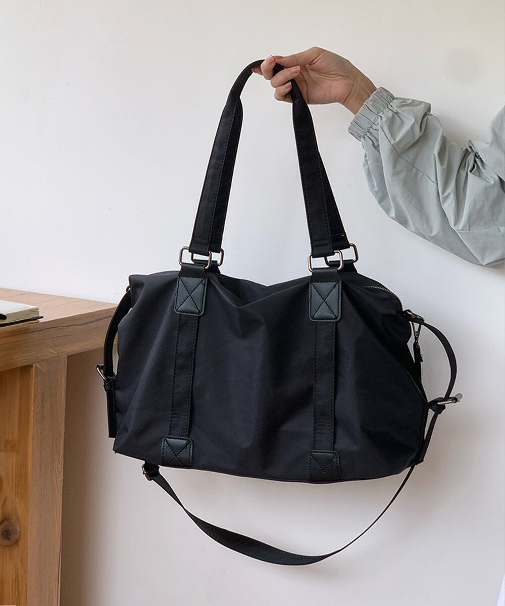 丈夫なナイロン素材を使用した、大容量の2WAYトートバッグ。