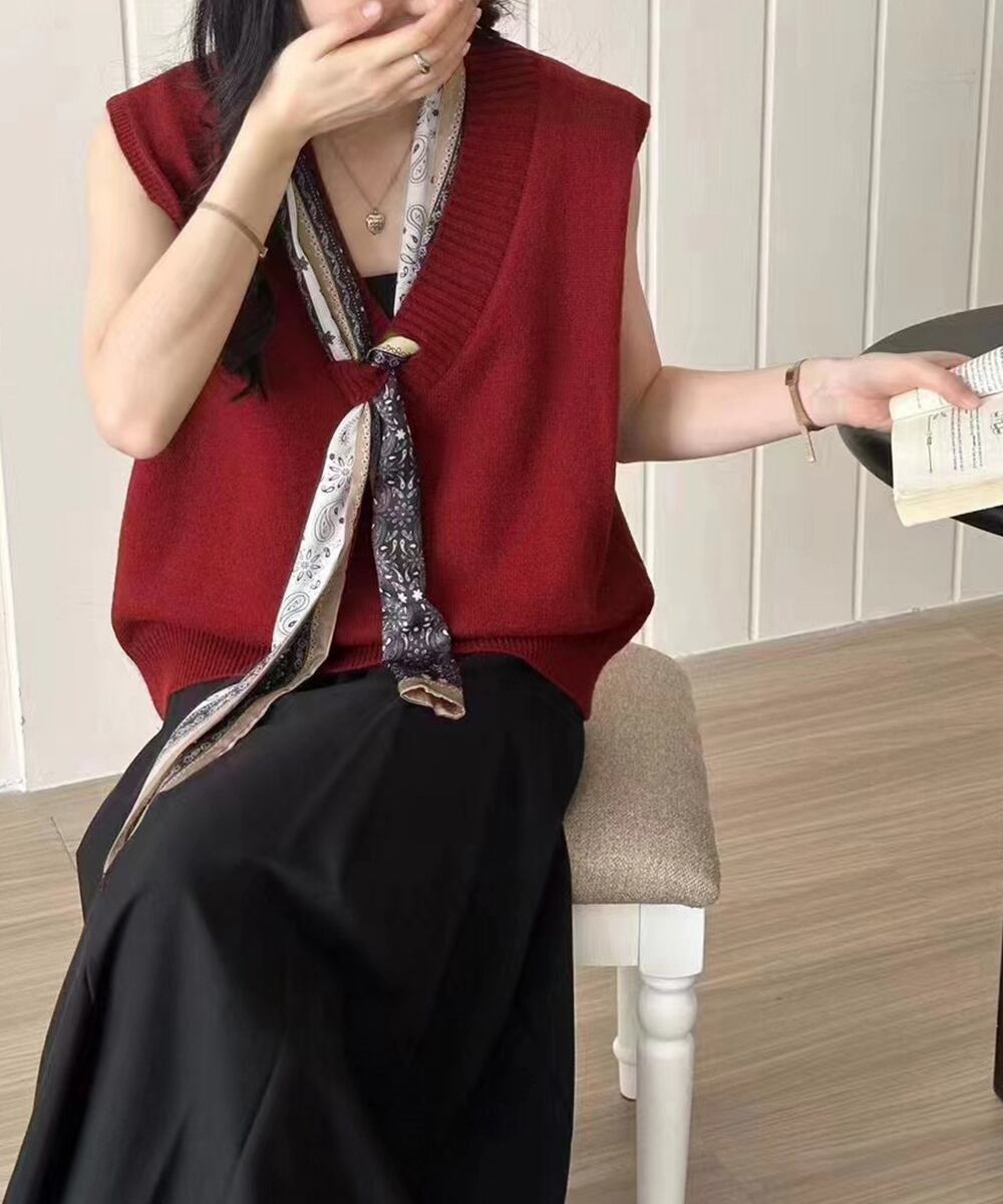 レディース ノースリーブニットトップス 大人カジュアル 着やせニットジレ 春秋冬 きれいめ プルオーバー ニットチョッキ