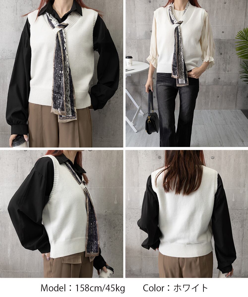 重ね着 体型カバー レイヤード服お洒落 ベストセーター無地