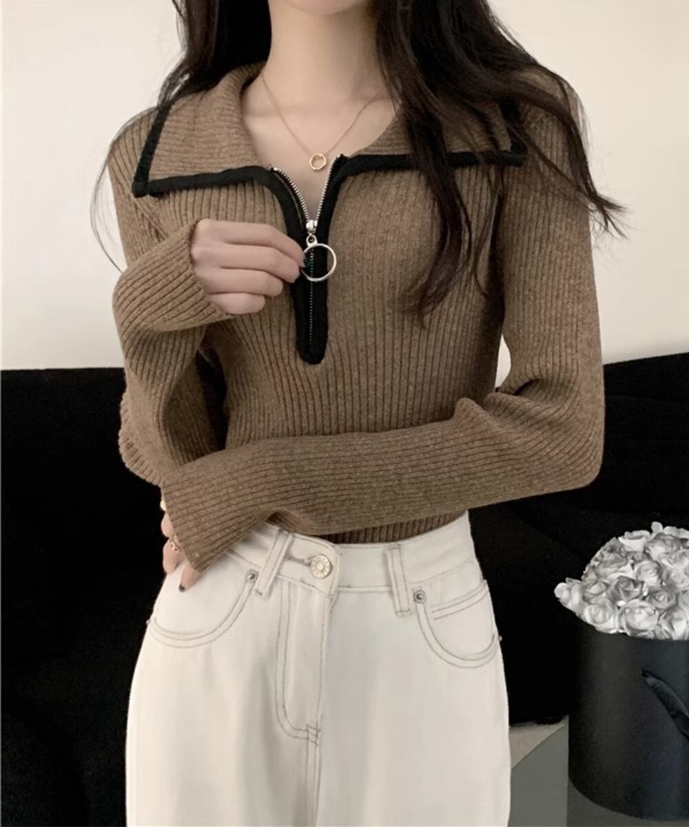 胸元のリングジップがアクセントになり、開け具合で印象チェンジも◎。