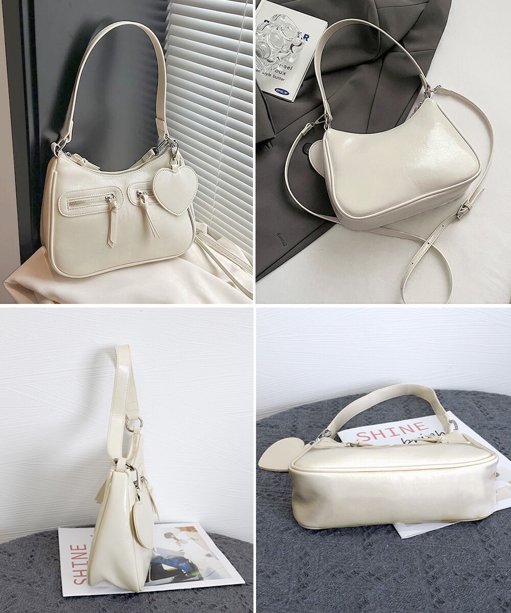 レトロショルダーバッグ ハートチャーム付