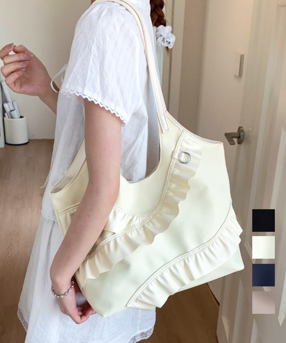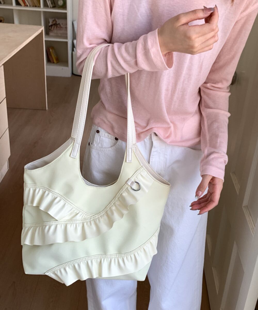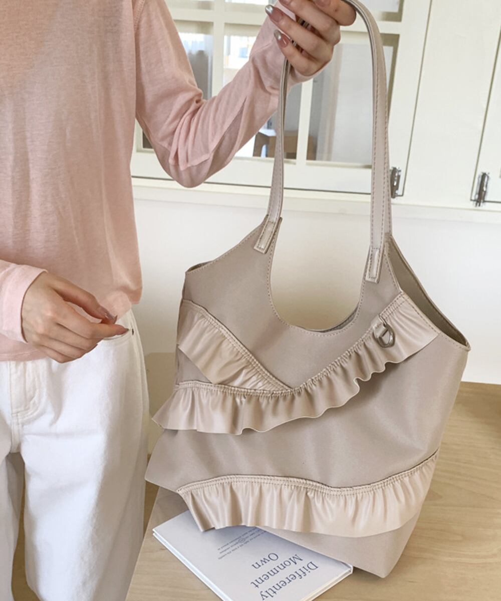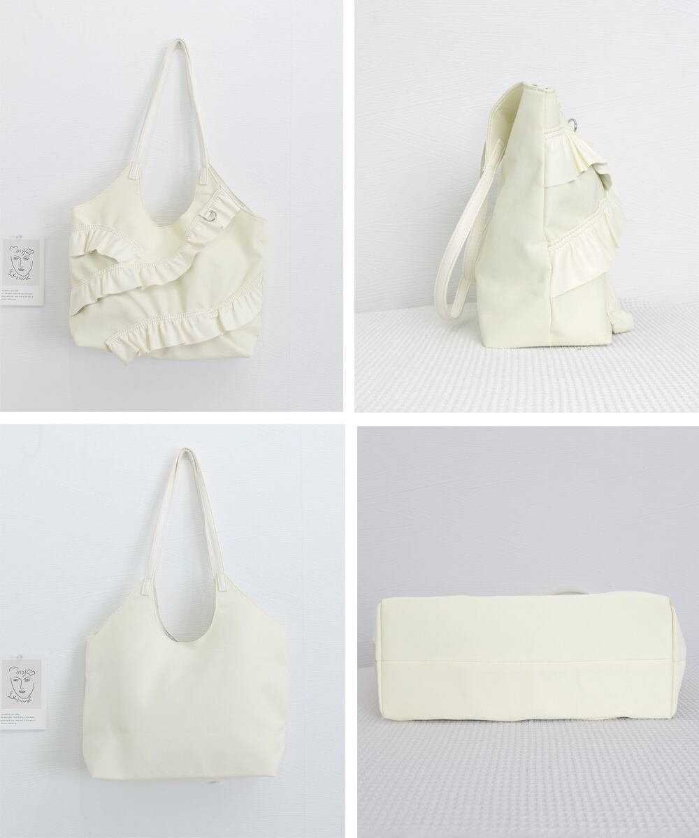 ラッフルフリルバッグ 韓国風 大人可愛い 手提げバッグ フェイクレザー 通学通勤 ハンドバッグ A4サイズ 2WAY鞄