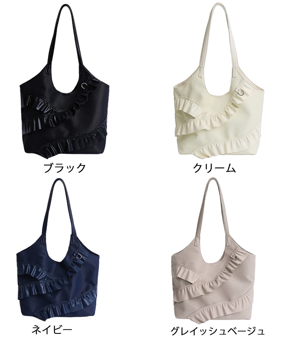 立体感のあるラッフルフリルが目を惹く、モード感漂うトートバッグ。