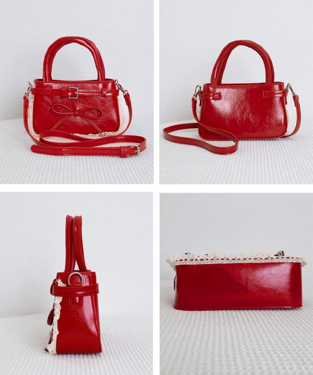 ハンドバッグ スクエア 2way 肩掛けバッグ リボンデザイン 大人かわいい手提げ鞄 レース 斜め掛けカバン フェミニン