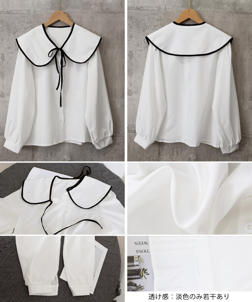 レディース バイカラーシャツブラウス フレンチガーリー 大きめ襟トップス ゆったり韓国ファッション  着やせ 体型カバー